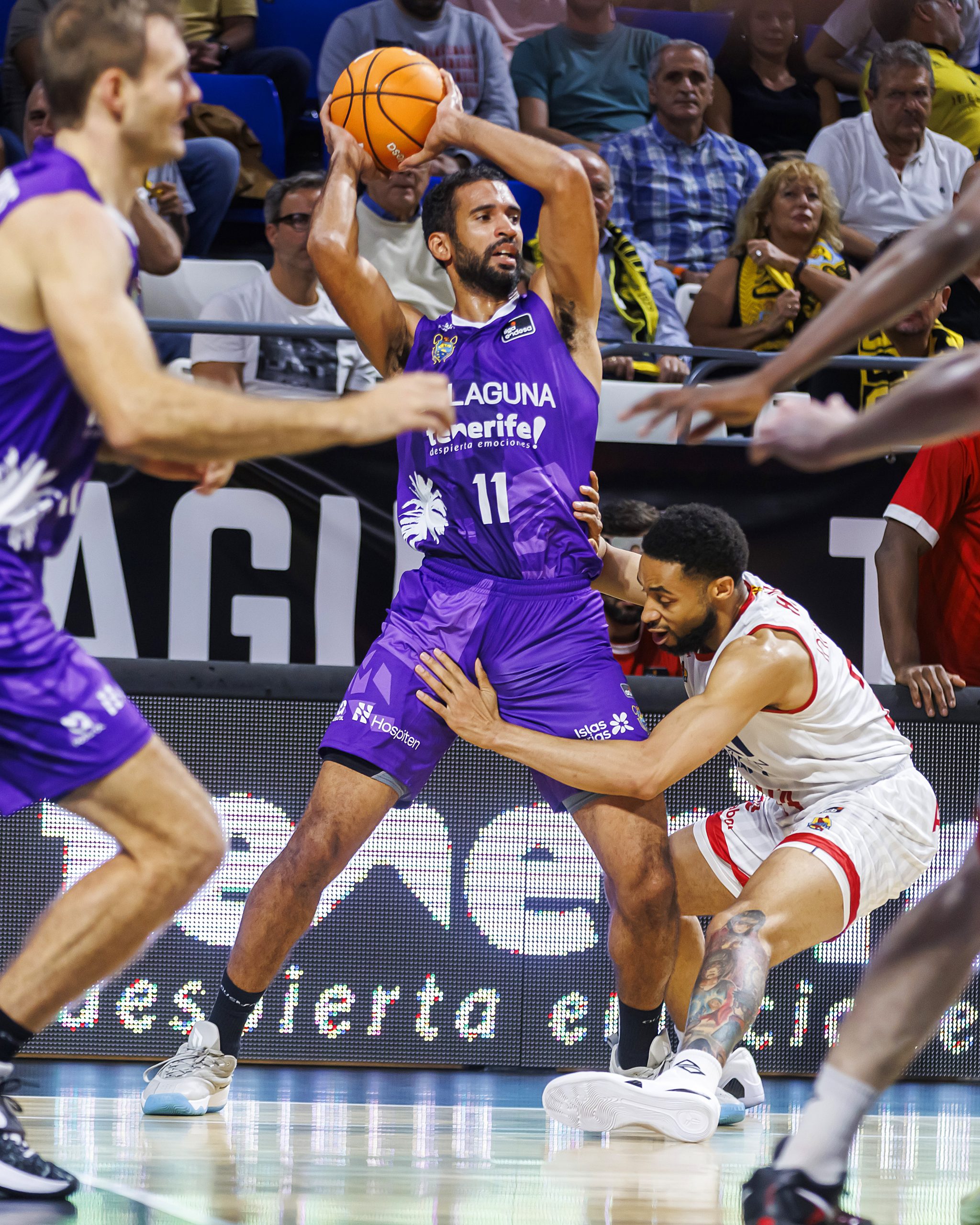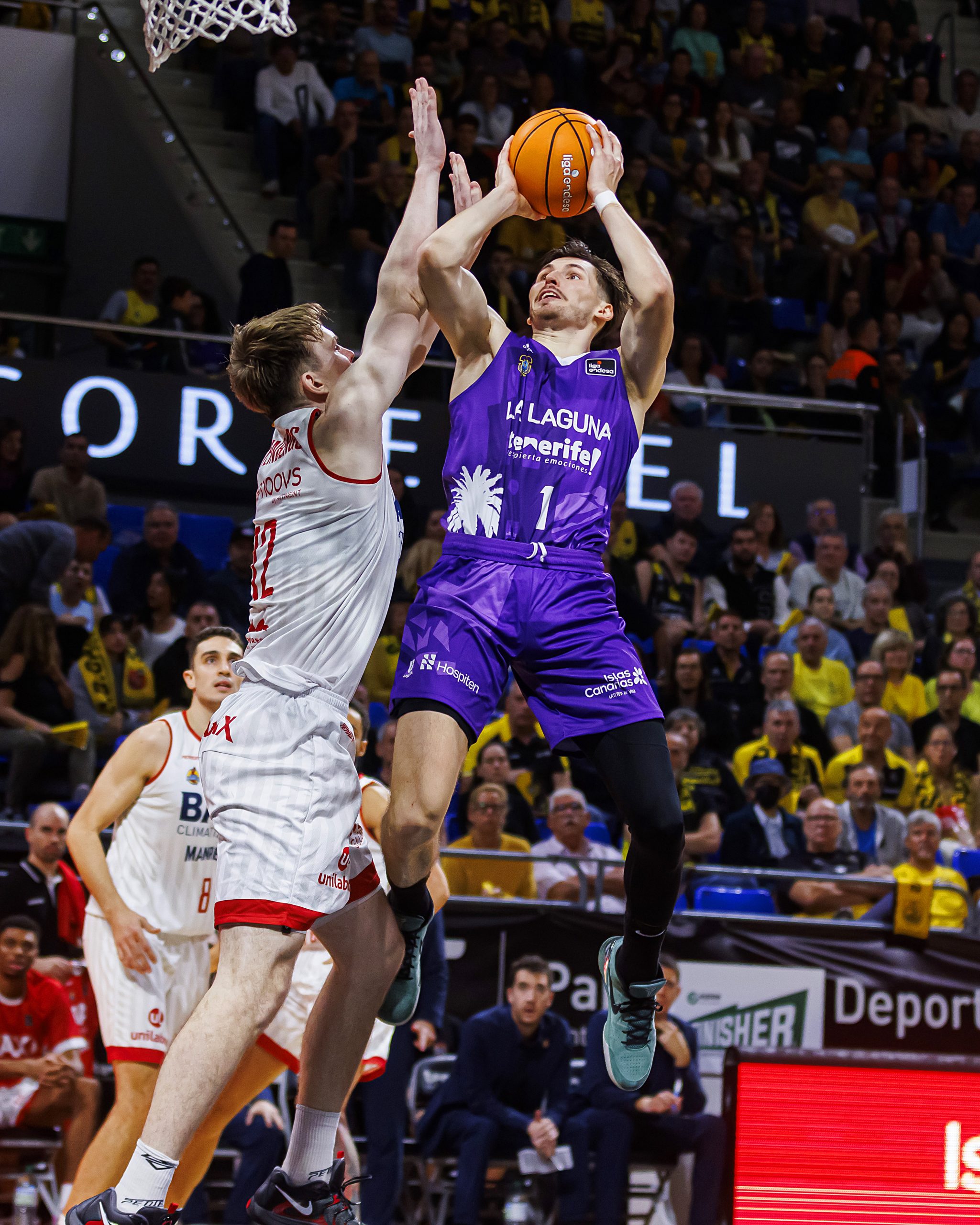 El partido nació con los tinerfeños muy enchufados, circulando el balón con criterio y peleando bien el rebote ofensivo para disponer de segundas opciones en ataque. Los laguneros comenzaron entonces a sumar de tres en tres. Un triple de Aaron Doornekamp, tres aciertos desde el tiro libre de David Krämer y un par de 2+1 de Fran Guerra y Tim Abromaitis abrieron una renta significativa (16-4, min, 5).