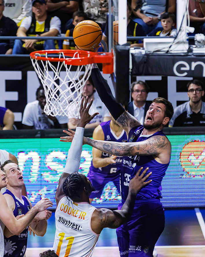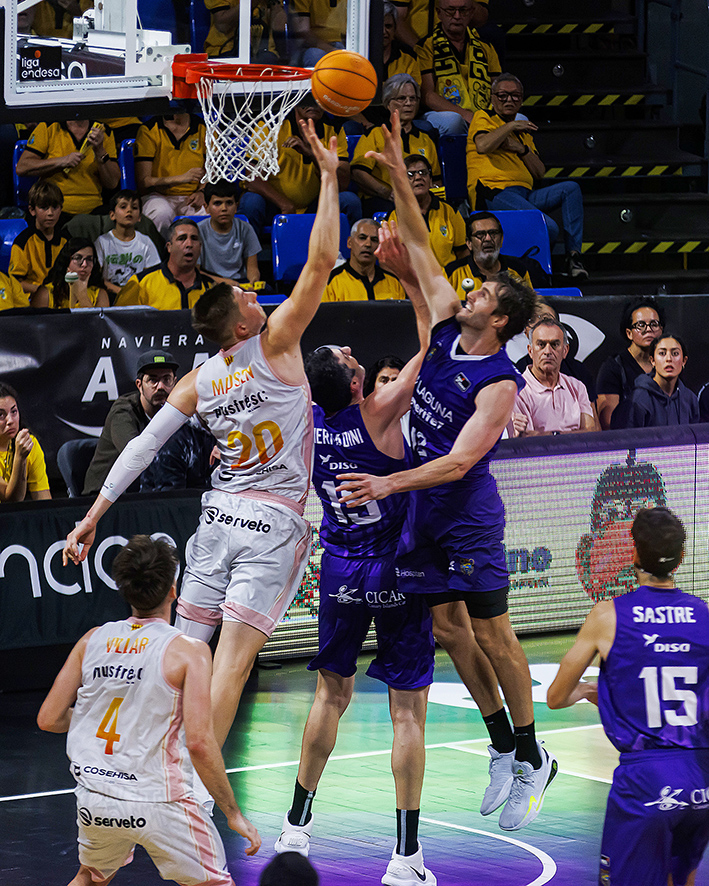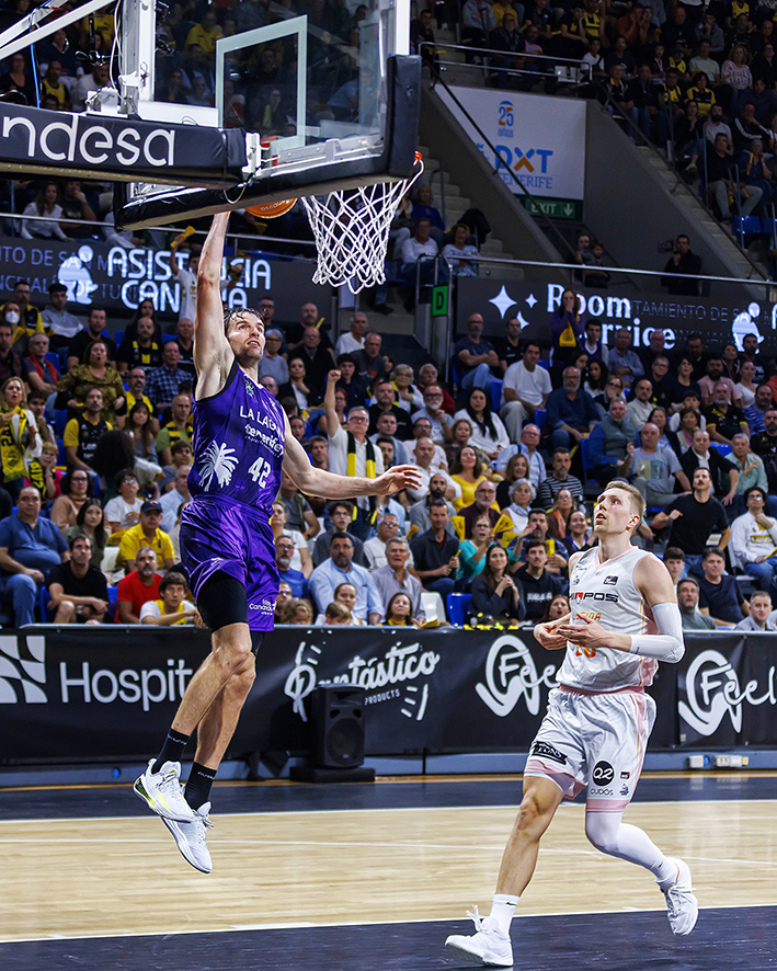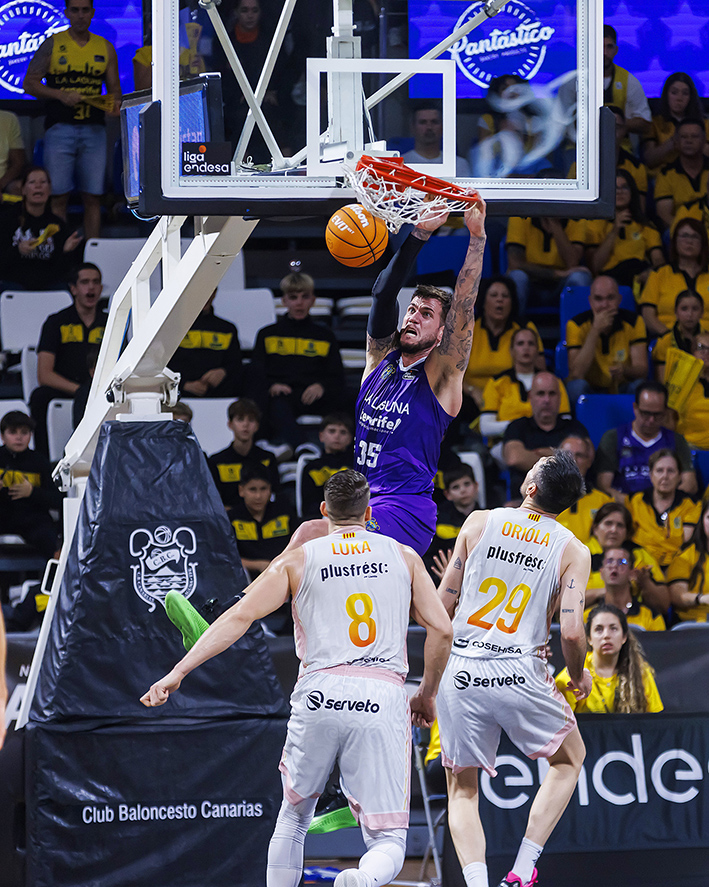 Con los del Segre encimando la subida de balón de los laguneros, con Madsen incluso en la marca sobre Huertas, La Laguna Tenerife mantuvo el tipo, gracias a varias acciones de mérito de Bruno Fitipaldo y a los balones interiores a Fran Guerra. Un espectacular alley oop de Marce culminado por el pívot grancanario permitió a los tinerfeños irse a la pausa cuatro arriba (50-46).