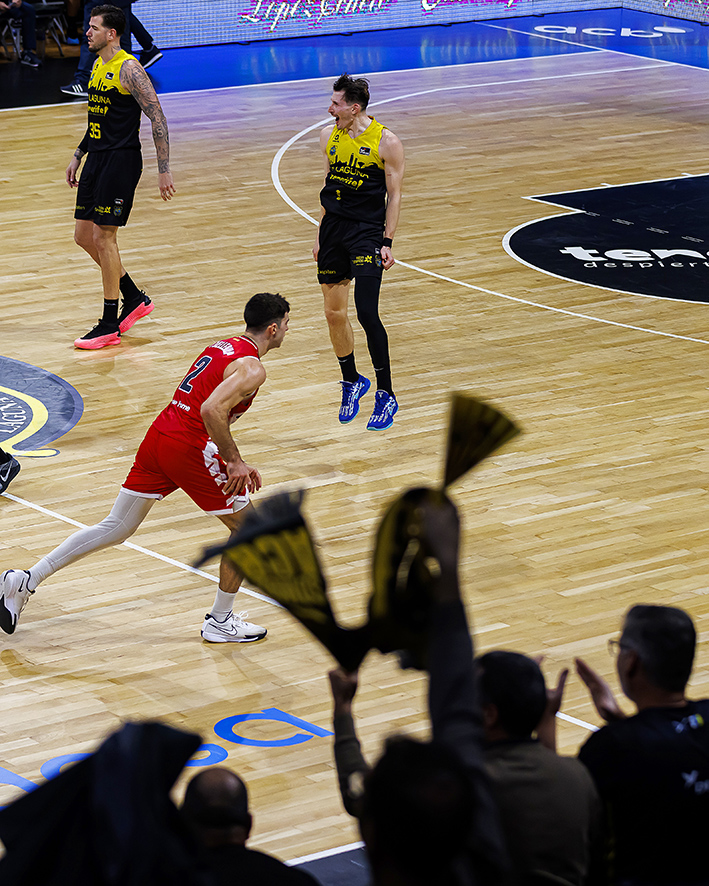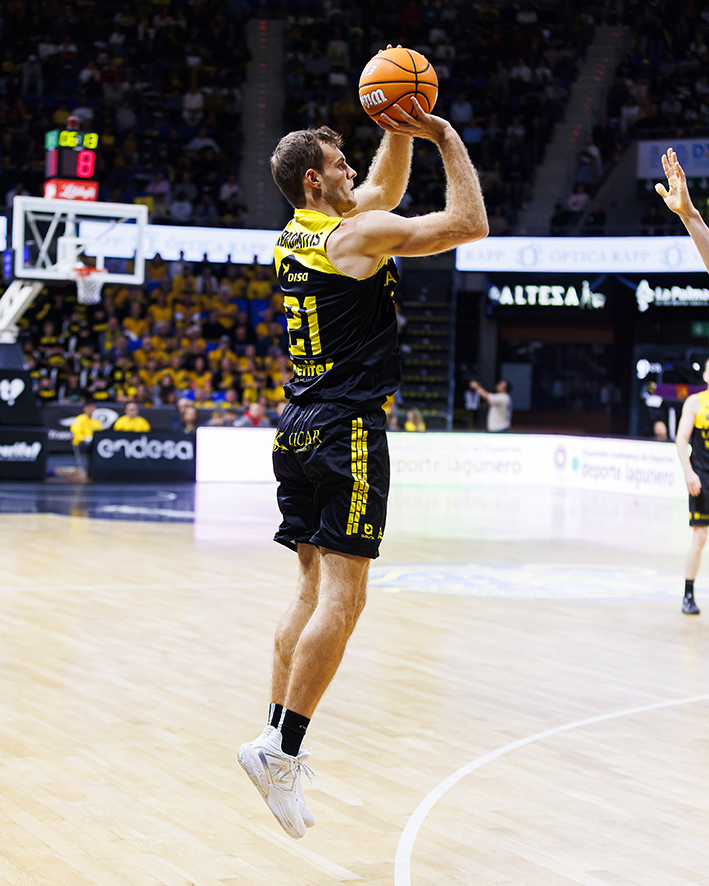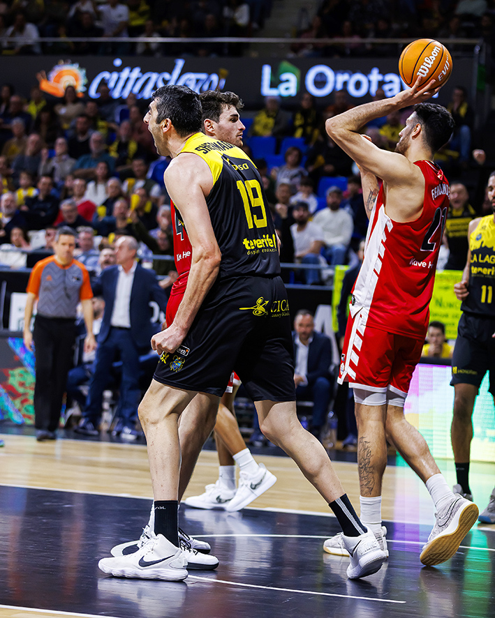 Con un Santiago Martín entregado a la causa, en el vigésimo sold out ACB consecutivo entre finales del curso pasado y la vigente campaña, la escuadra de Txus Vidorreta no dio ninguna opción a la remontada rival. Los interiores insulares martillearon una y otra vez en las continuaciones y el buen hacer en el extra pass volvía a traducirse en aciertos como puñales desde el 6,75 (70-53).