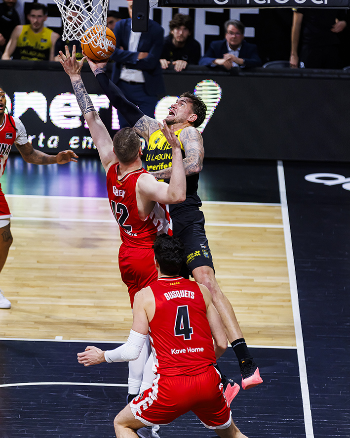Una tarde redonda en la que los laguneros sofocaron el reciente efecto Girona (los catalanes acumulaban tres victorias consecutivas, dos de ellas ante rivales de Euroliga) con una actuación muy sólida, sobresaliente en los tiros de dos (23/30), que incluyó también la mejor versión de un estelar Gio Shermadini (34 de valoración).