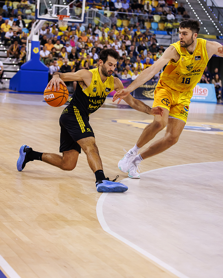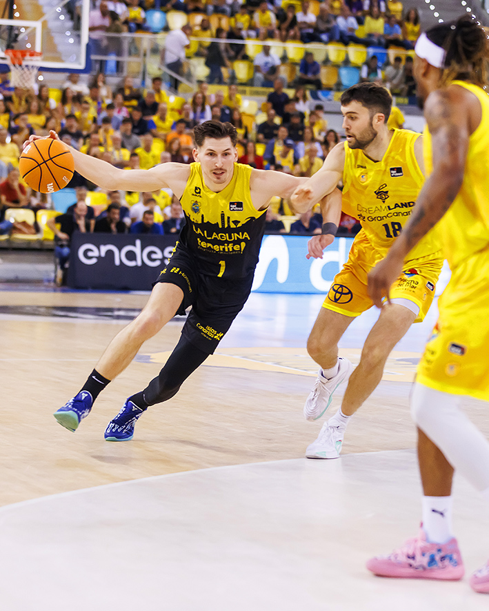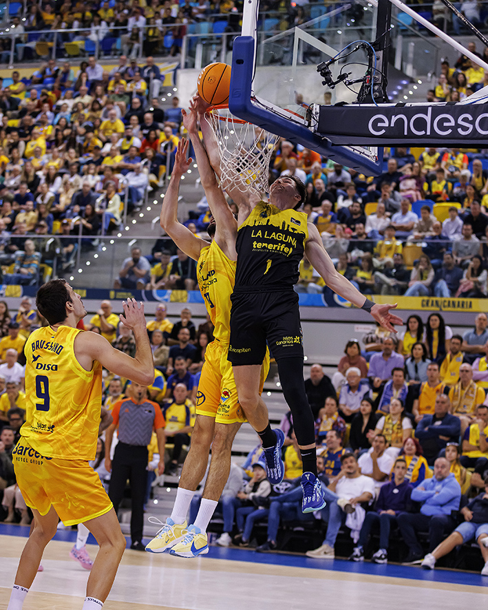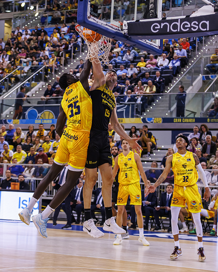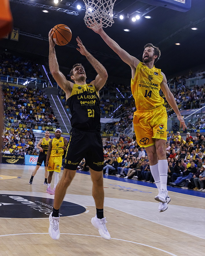 El partido nació y creció parejo, con La Laguna Tenerife tratando de imponer sus señas de identidad. El criterio para mover la pelota y los balones interiores a Fran Guerra, así como los galones de Bruno Fitipaldo, marcaron la puesta en escena de los tinerfeños (7-9, 12-16), que además protegían muy bien el rebote en su canasta e iban con todo en ataque para disponer de segundas opciones.