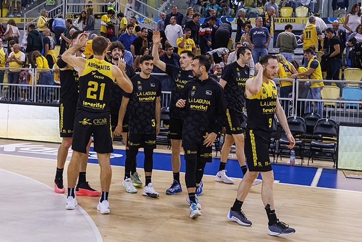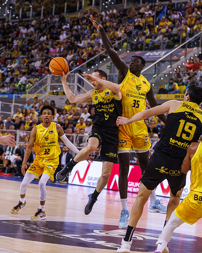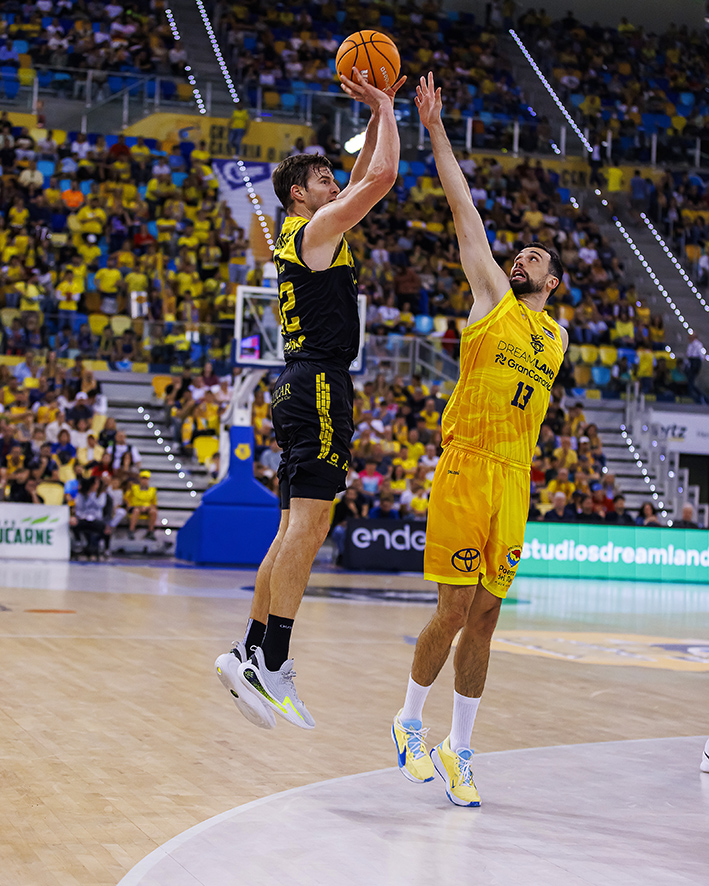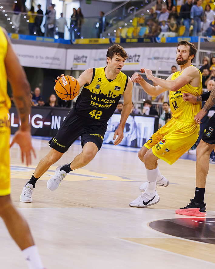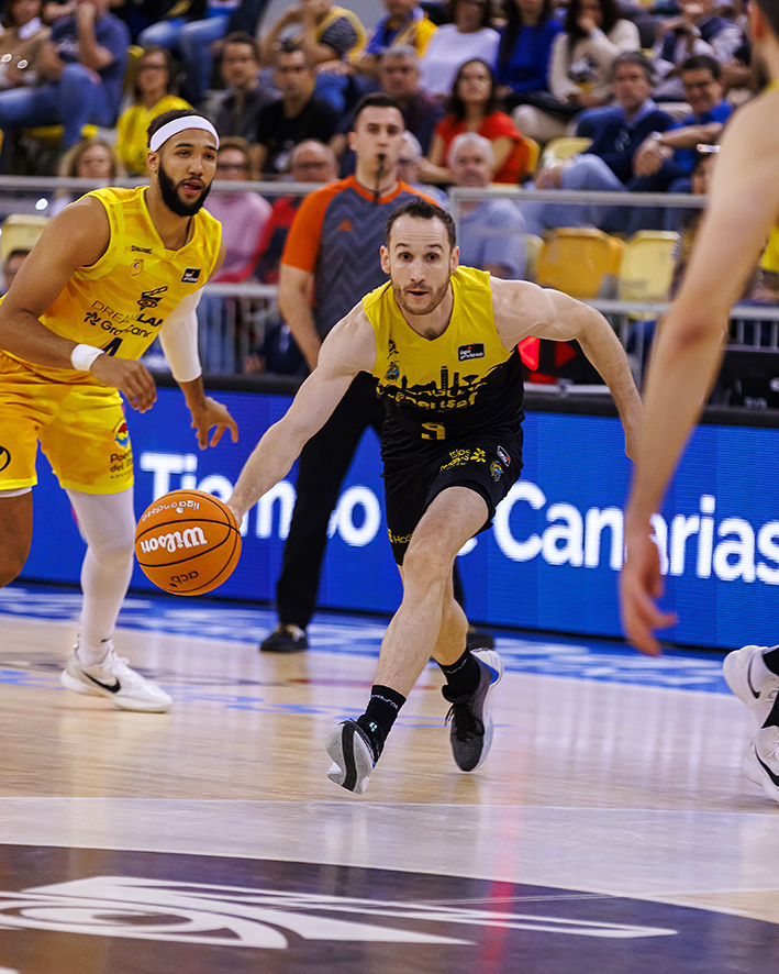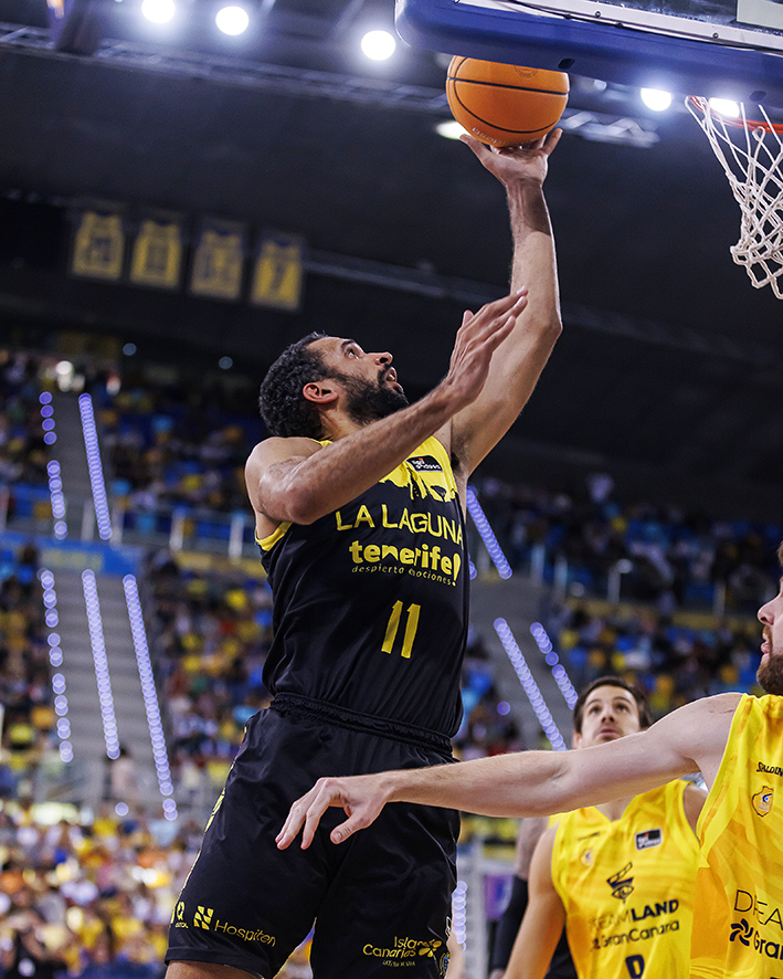 El partido nació y creció parejo, con La Laguna Tenerife tratando de imponer sus señas de identidad. El criterio para mover la pelota y los balones interiores a Fran Guerra, así como los galones de Bruno Fitipaldo, marcaron la puesta en escena de los tinerfeños (7-9, 12-16), que además protegían muy bien el rebote en su canasta e iban con todo en ataque para disponer de segundas opciones.