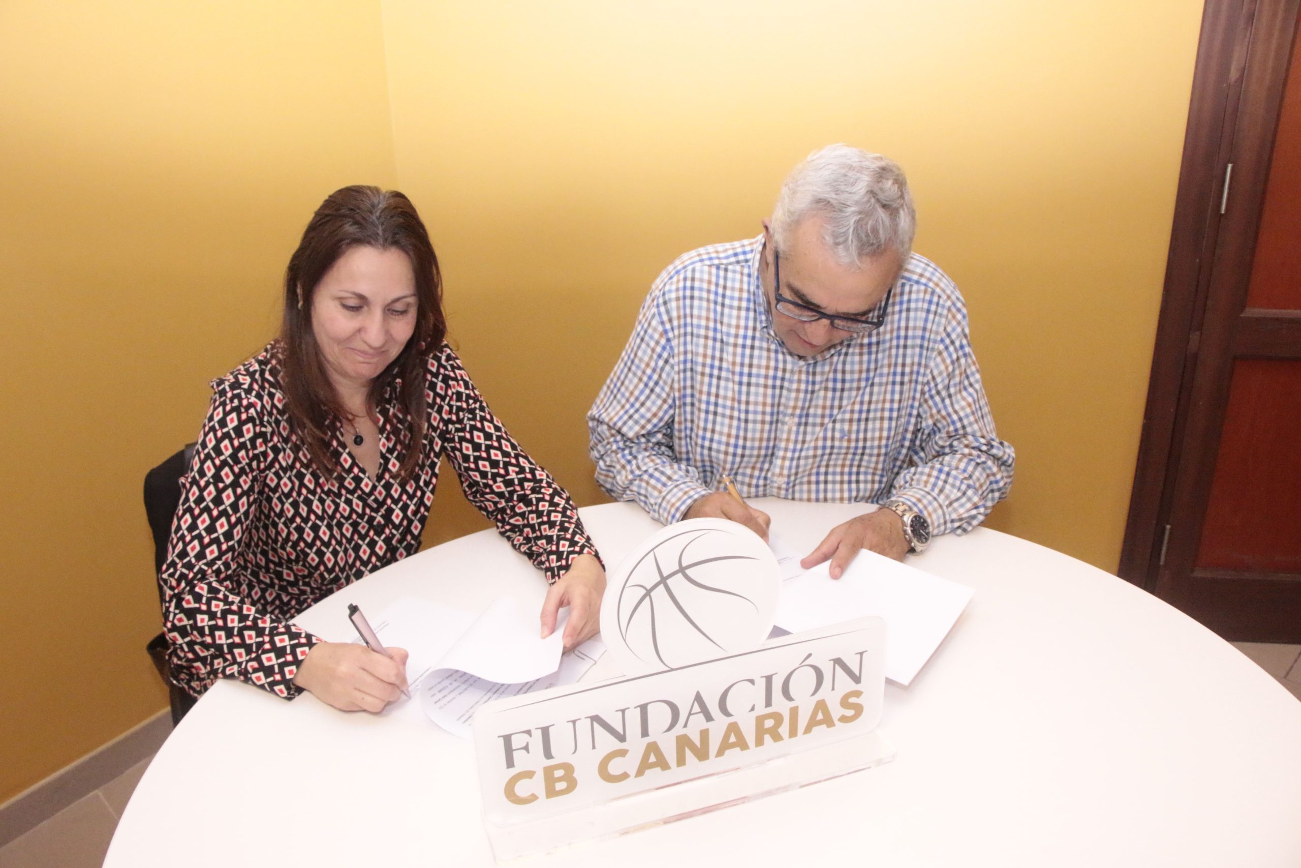 El presidente de la Fundación CB Canarias, Santiago Cacho, y la directora gerente de la Fundación Hospitalarias Tenerife, Carmen Delia Álamo, han firmado un acuerdo por el que ambas entidades colaborarán en el impulso de la inclusión desde el baloncesto.
