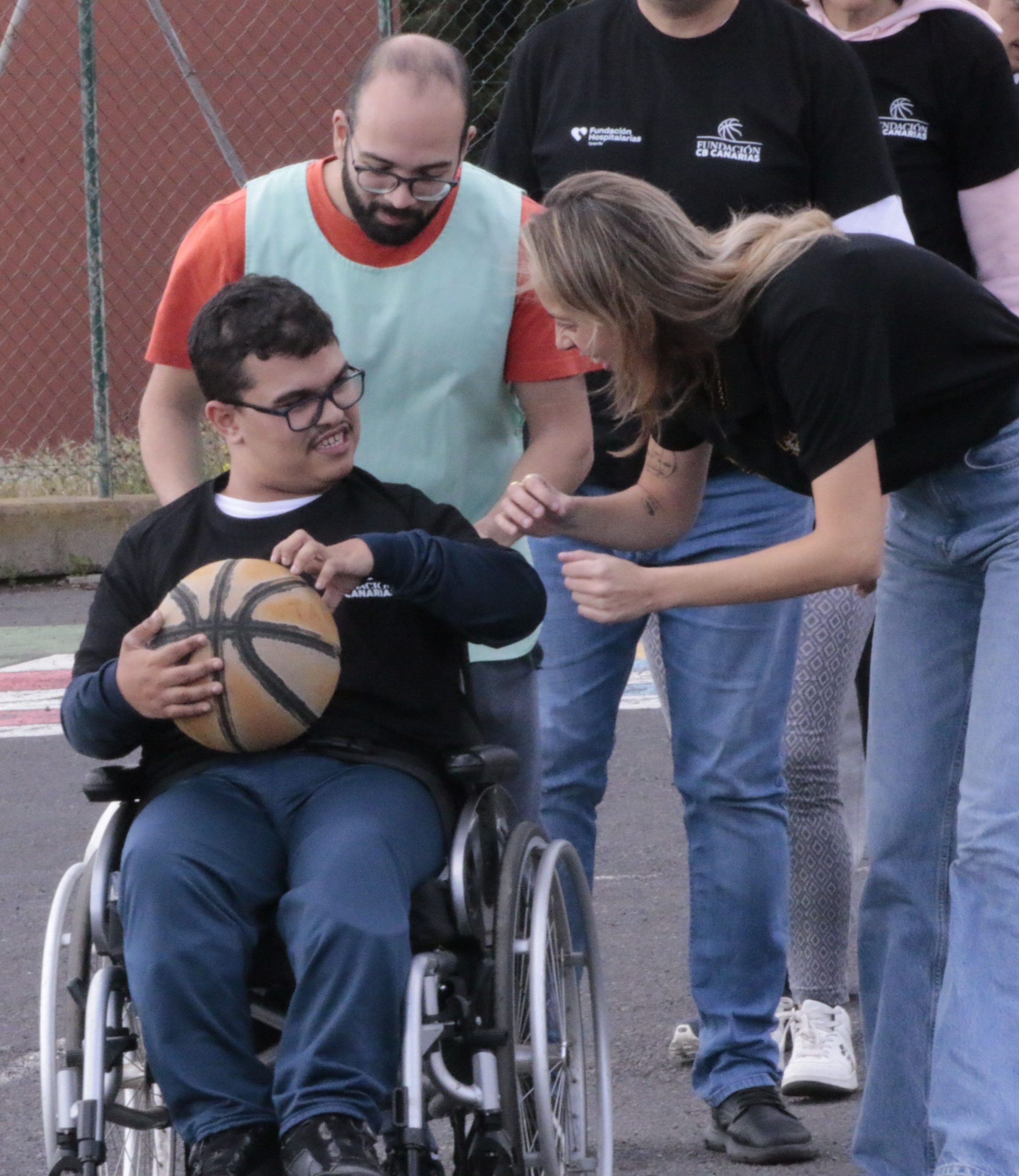 La directora gerente de la Fundación Hospitalarias Tenerife, Carmen Delia Álamo, fue la encargada de recibir el material, que fue repartido entre los componentes del equipo. En el acto celebrado en las instalaciones de la Fundación Hospitalarias Tenerife participó igualmente Dulce Rufino Ventura, directora Pedagógica Colegio Público de Educación Especial Acamán (CPEE); Iván Martínez Rodríguez, subdirector-orientador CPEE Acamán; Ana González, logopeda CPEE Acamán y entrenadora del equipo de baloncesto; y Javier Curbelo, tutor de aula del CPEE Acamán.