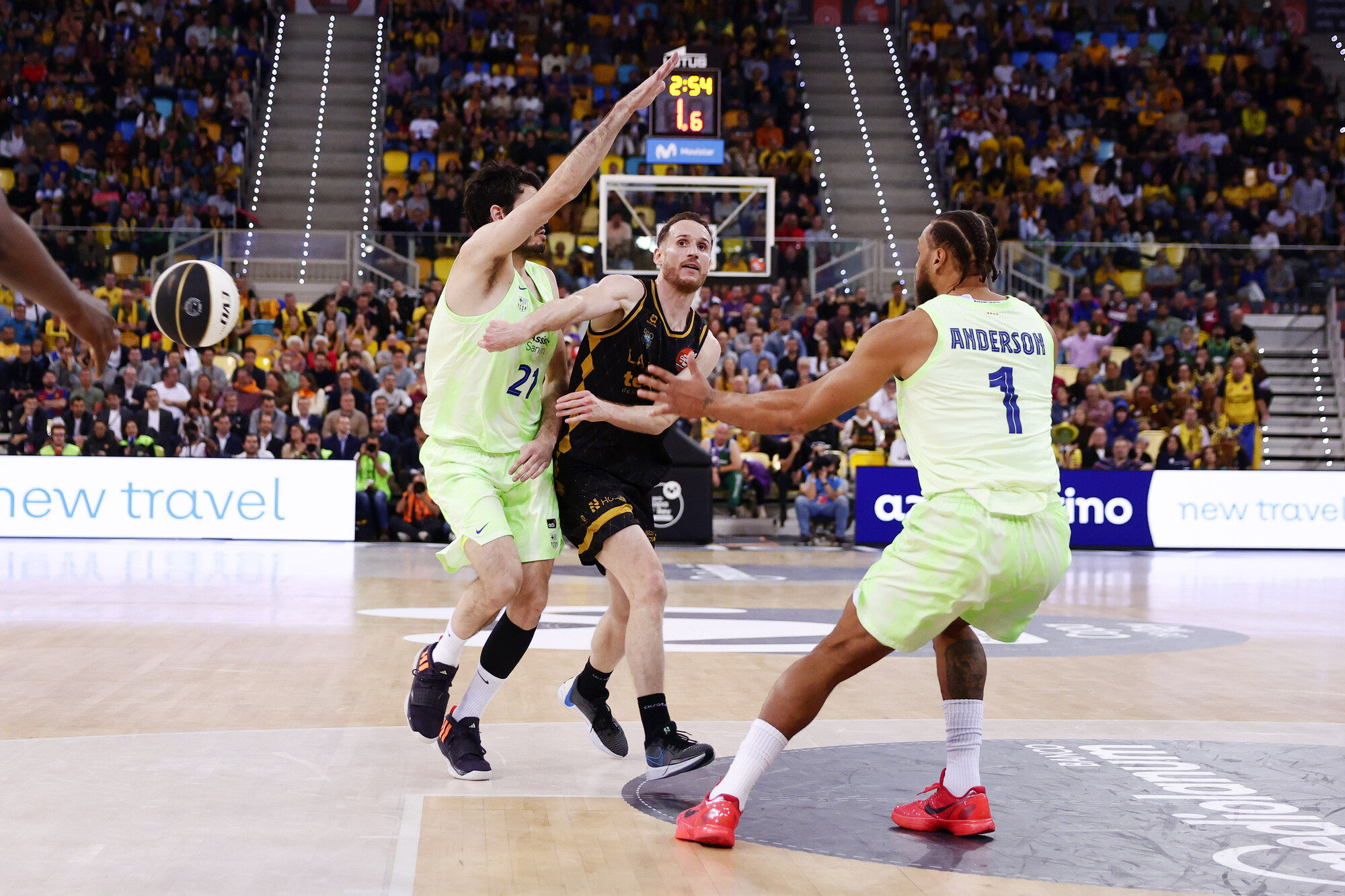 Por más que intentaba equilibrar fuerzas, el conjunto insular sufría para detener a un rival muy enchufado (7/12 en triples al descanso), que exprimía su profundidad de banquillo y ampliaba su renta en el electrónico (35-47), al tiempo que la hinchada aurinegra protestaba varias decisiones arbitrales.