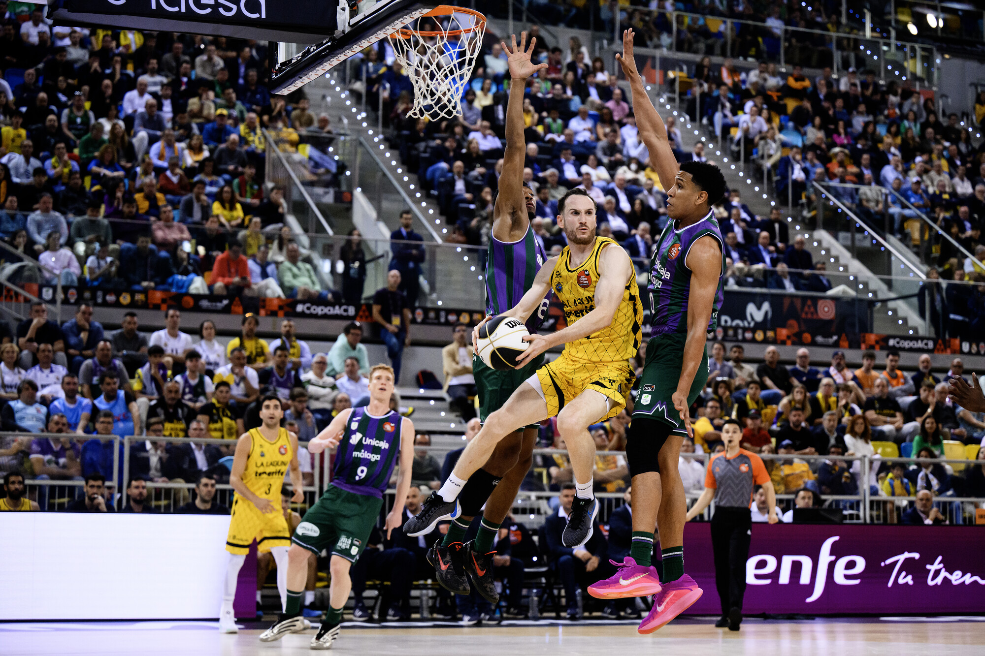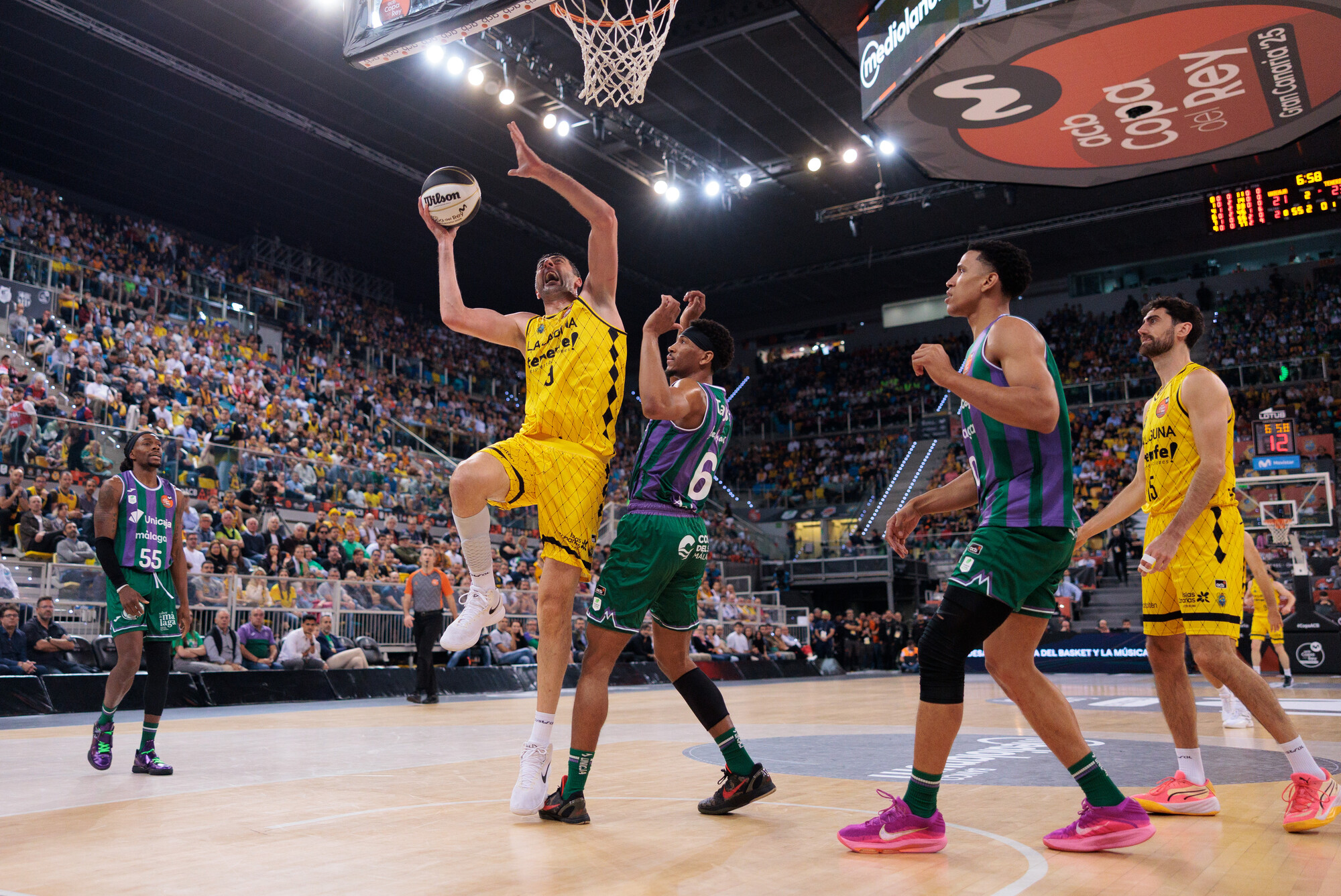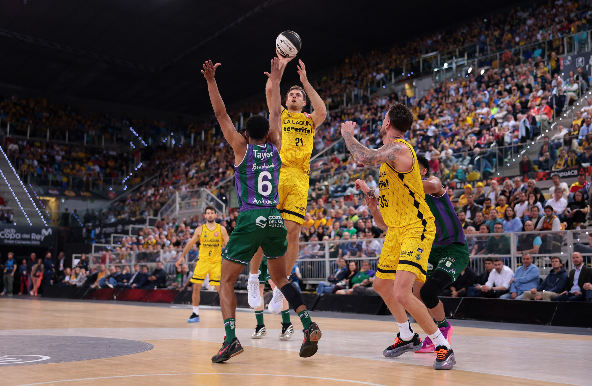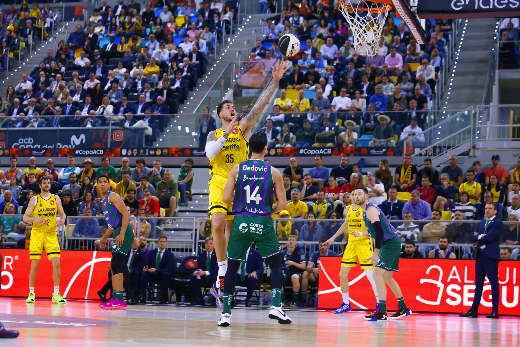 Solo los errores desde más allá del arco (0/9 de entrada) evitaban que la renta de los malagueños fuera mayor, más si cabe cuando doblaban a los insulares en la puja por el rebote al cierre del primer cuarto (10 rechaces por cinco de los laguneros) y los tinerfeños cometían más pérdidas de las deseadas. Fue ahí cuando La Laguna Tenerife cambió el chip y aprovechó la irrupción de un gran Gio Shermadini para llevarse el duelo a su terreno.