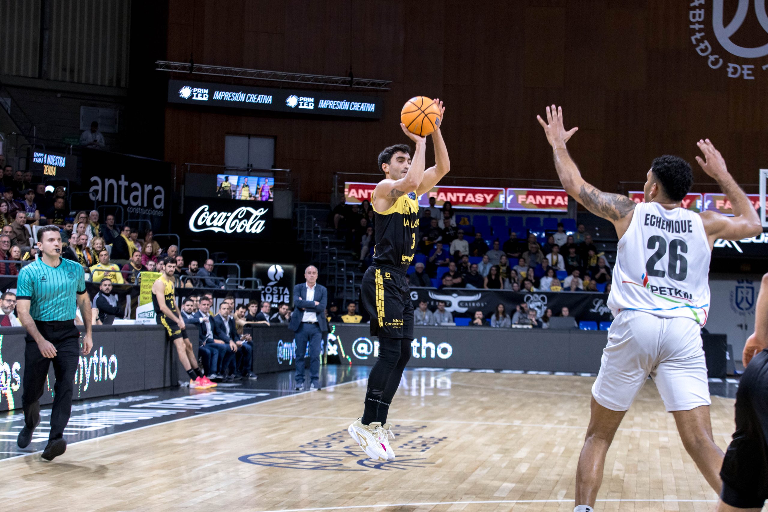 Lejos de bajar el pistón, el buen hacer insular se prolongaría camino del descanso, con un par de 3+1 incluidos de Thomas Scrubb y Lluís Costa (53-37, min. 18). Tras el paso por vestuarios (55-39), la escuadra visitante echó el resto para darle la vuelta al guión y tres pérdidas casi de inicio de los aurinegros dieron vida a los de Burak Goren, que firmaron un parcial de 1-13 (59-53) camino de una remontada que los aurinegros supieron neutralizar.