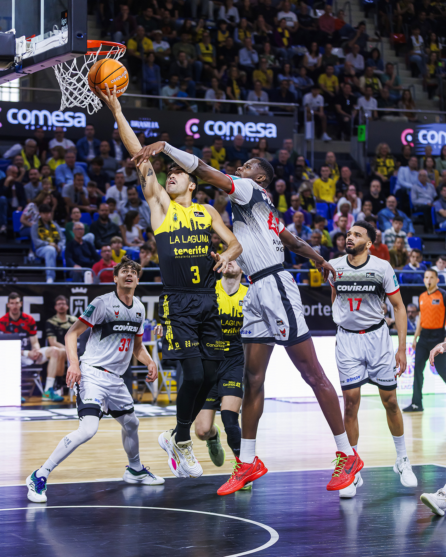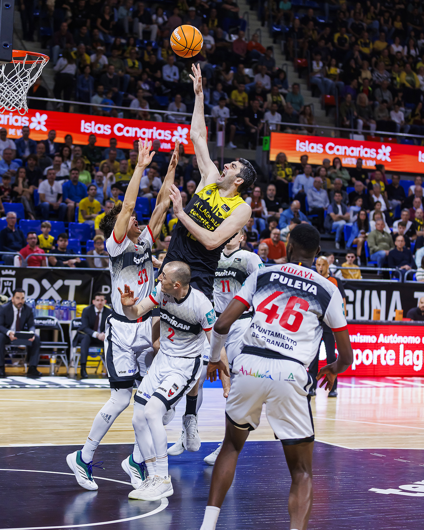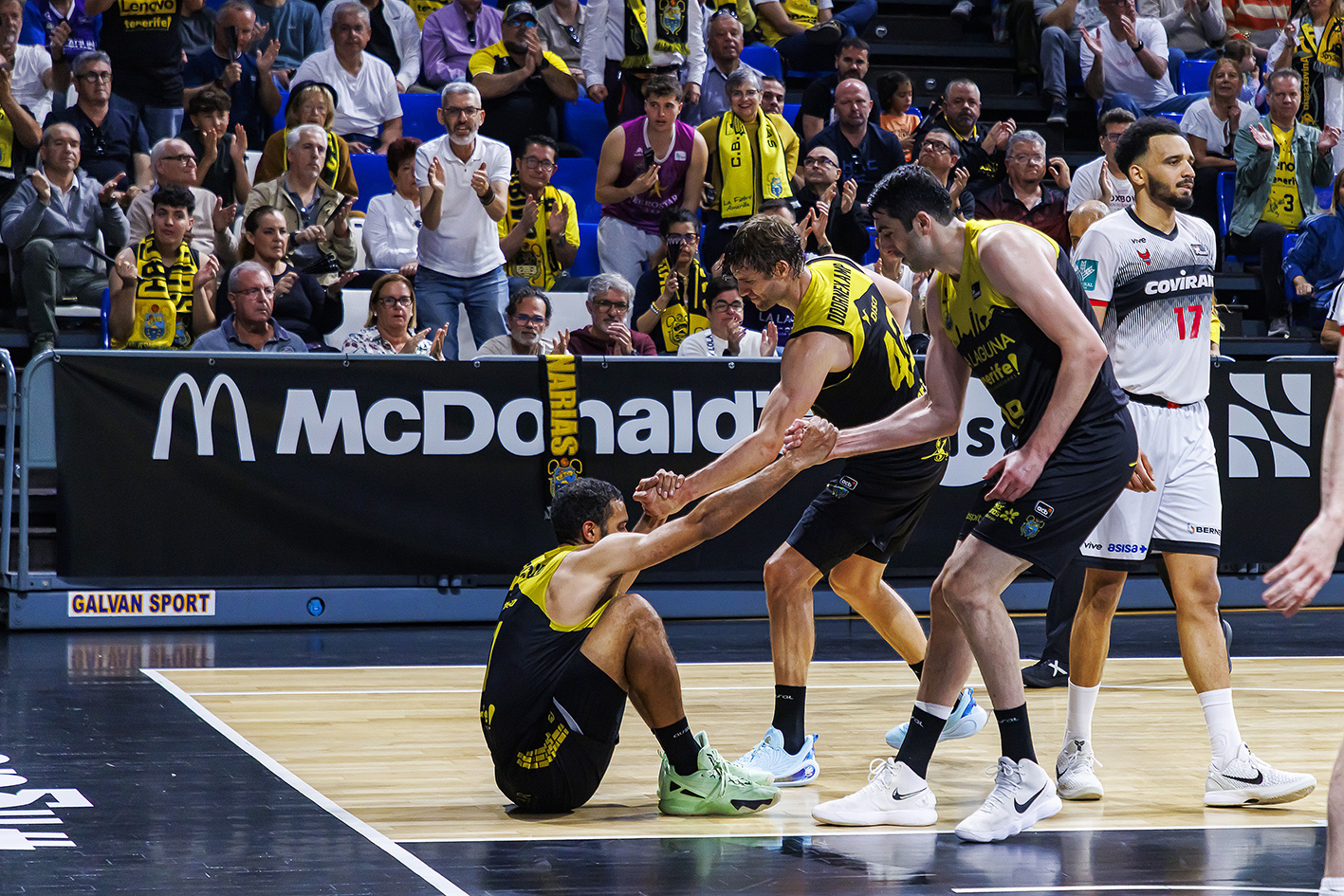 El partido creció entonces con los visitantes con muchos minutos sin un cinco puro en pista pero exprimiendo las opciones de los triples abiertos de Ndiaye y amparándose sobre todo en el talento ofensivo de Griffin y Silverio (22-31). En ese contexto, el conjunto insular intentó equilibrar la contienda con varias acciones de mérito bien finalizadas por Kostas Kostadinov (33-35), pero el Covirán mantuvo el pulso hasta el descanso para irse cuatro arriba a la pausa (44-48).
