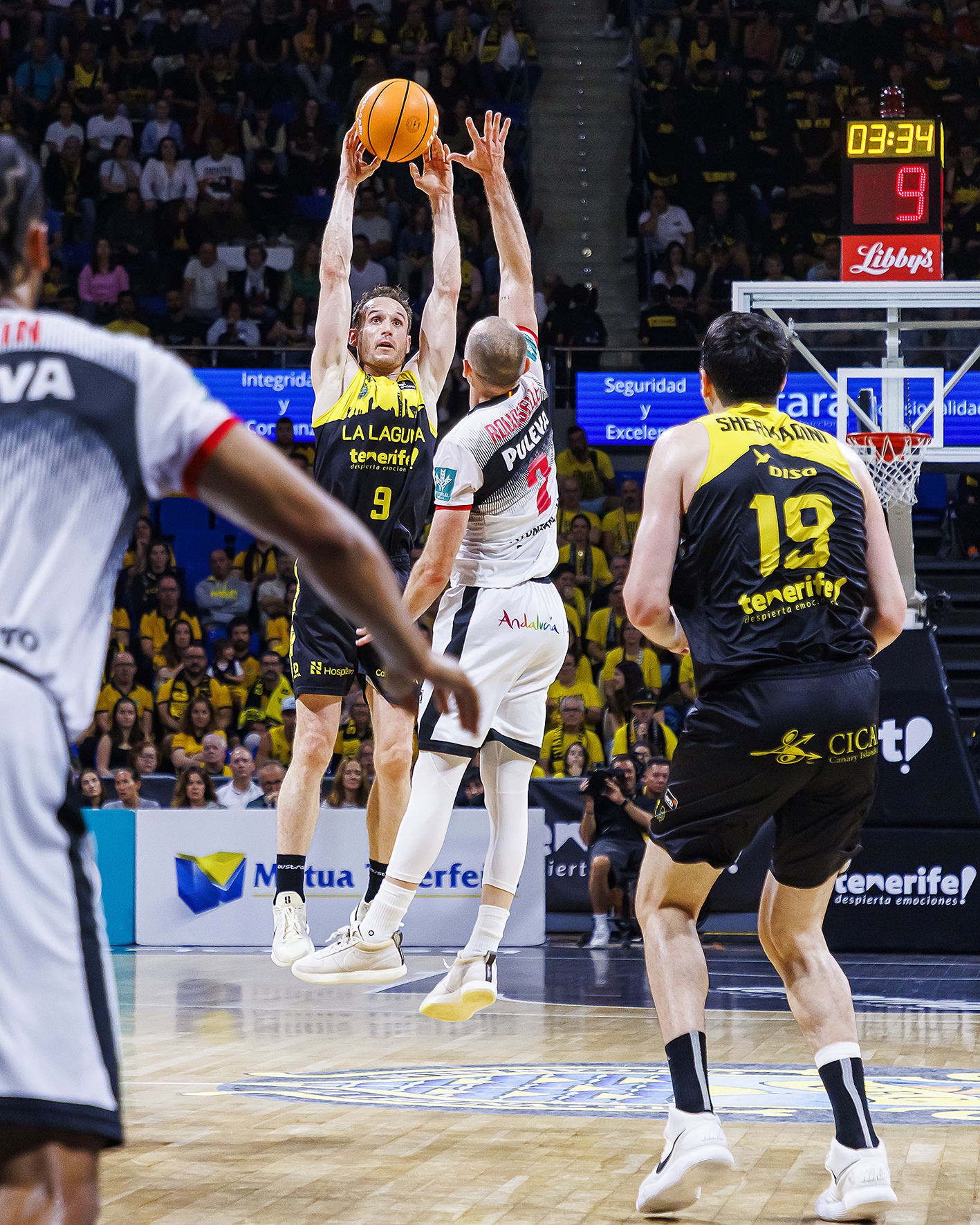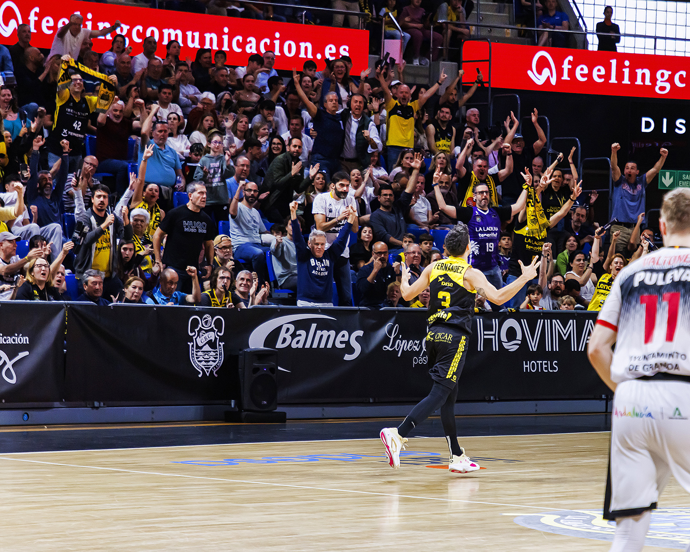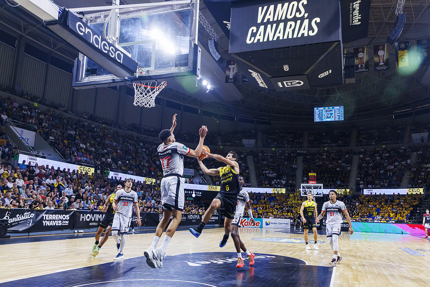 El Covirán Granada sí que empezó a sumar de tres en tres (3/5 de inicio desde el 6,75, más un par de acciones de 2+1), lo que le permitió coger las riendas del electrónico (7-16). Con la irrupción de la segunda unidad y la verticalidad de Jaime Fernández, La Laguna Tenerife estrechó el cerco y firmó un parcial de 11-0, a poco que entraron un par de tiros desde más allá del arco (20-20).