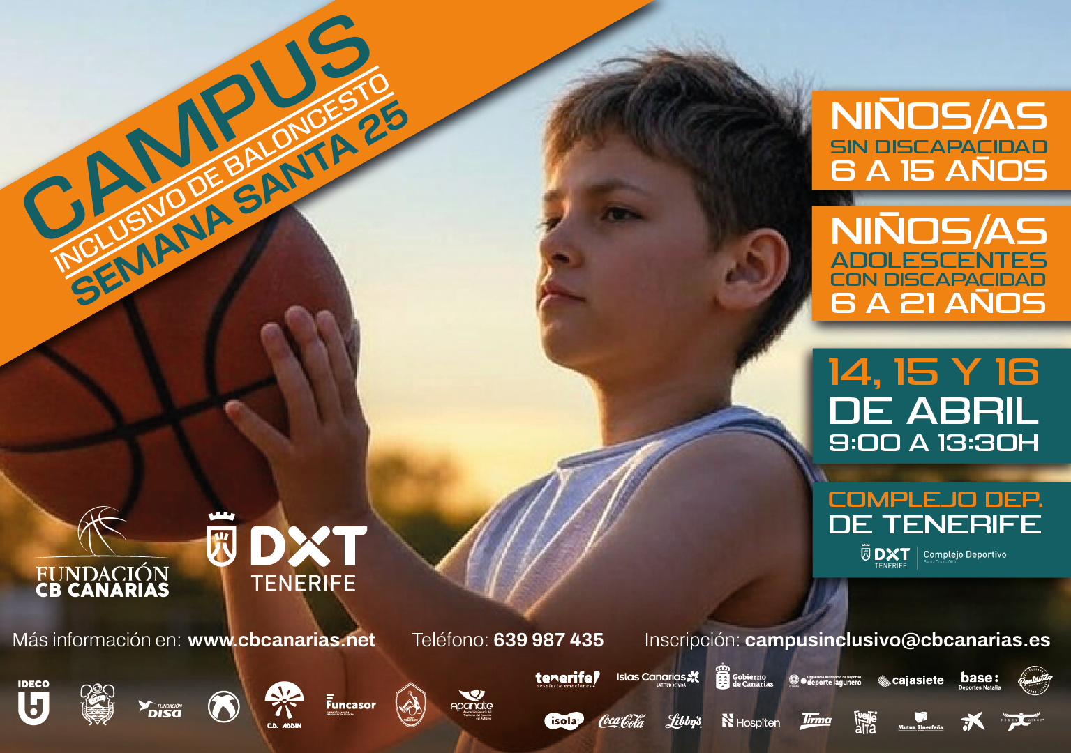viernes, 11 abril, 2025 - 02:04El Cabildo Insular de Tenerife, a través de la empresa pública Ideco (Gestión Insular para el Deporte, la Cultura y el Ocio), y la Fundación CB Canarias ponen en marcha la segunda edición del ‘Campus Inclusivo de Baloncesto de Semana Santa’, que se desarrollará entre el 14 y el 16 de abril en el Complejo Deportivo Santa Cruz-Ofra, en horario de 9:00 a 13:30 horas.