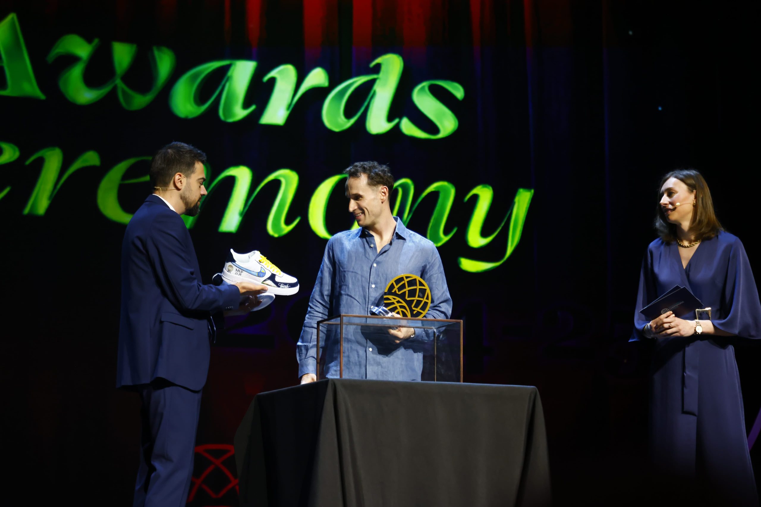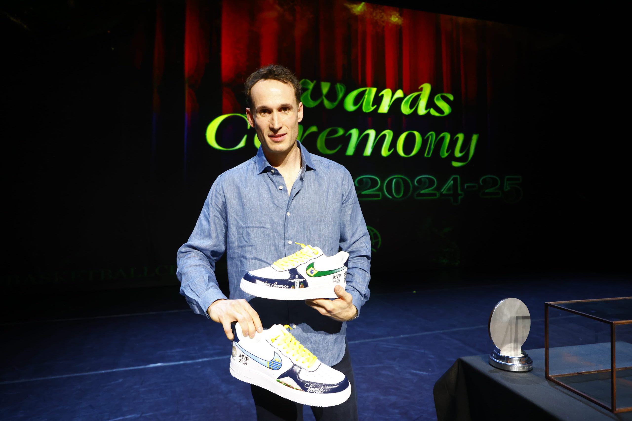 El brasileño recibió el trofeo de la mano del ex internacional griego y leyenda del baloncesto FIBA, Theodoros Papaloukas, durante la Gala Anual de la BCL, celebrada este mediodía en el “Hellenic Cosmos” de Atenas.