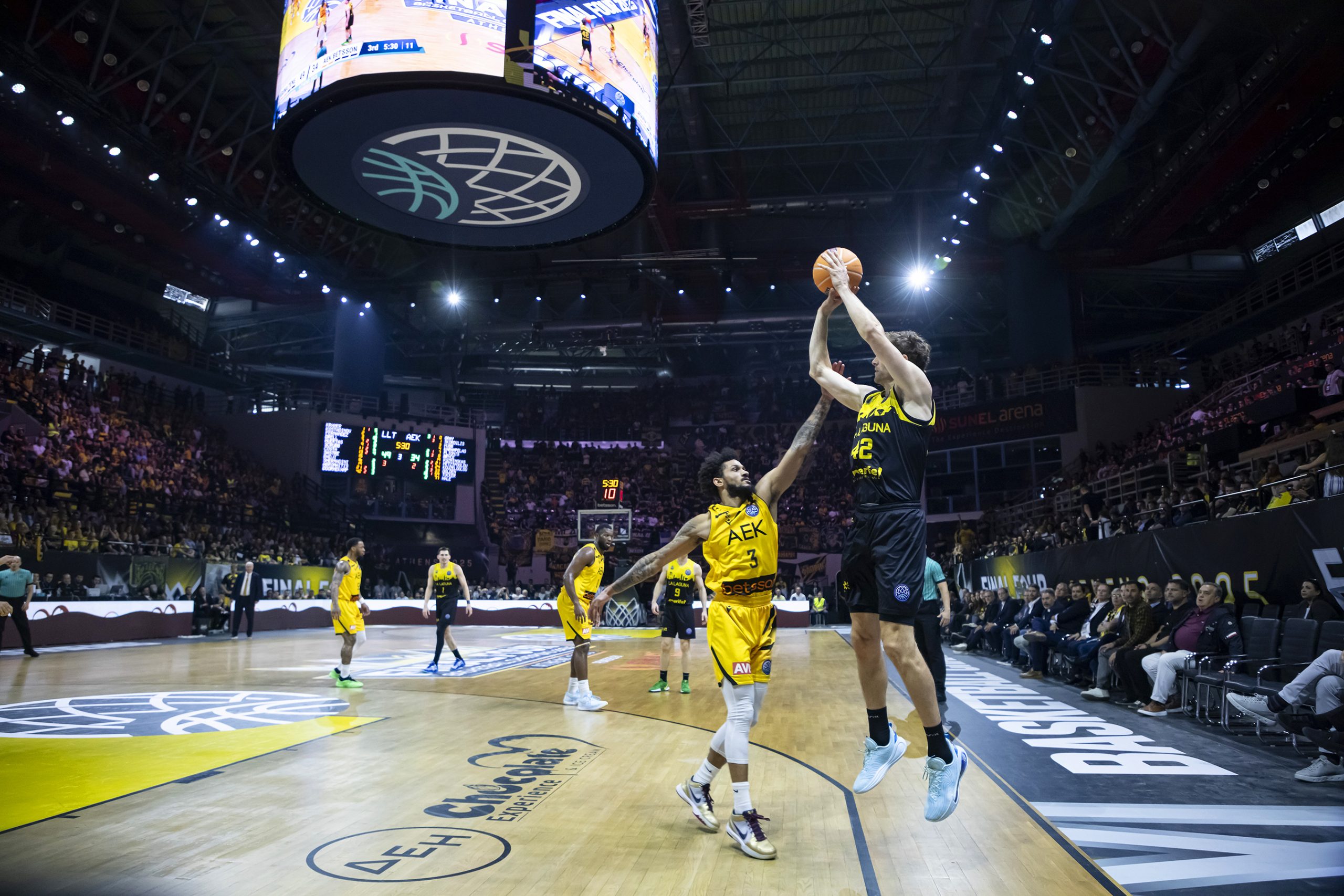 Por el contrario, el AEK ganaba crédito camino del final y sumaba argumentos a su causa, espoleado por un público muy ruidoso. Un 0-7 al inicio del último cuarto (55-48) fue un presagio de que se avecinaba un cierre muy parejo. Y así ocurrió por mucho que La Laguna Tenerife intentara jugar sus bazas. Dos triples de Hubb (63-59 y 65-62) devolvieron ya del todo el partido al alambre.