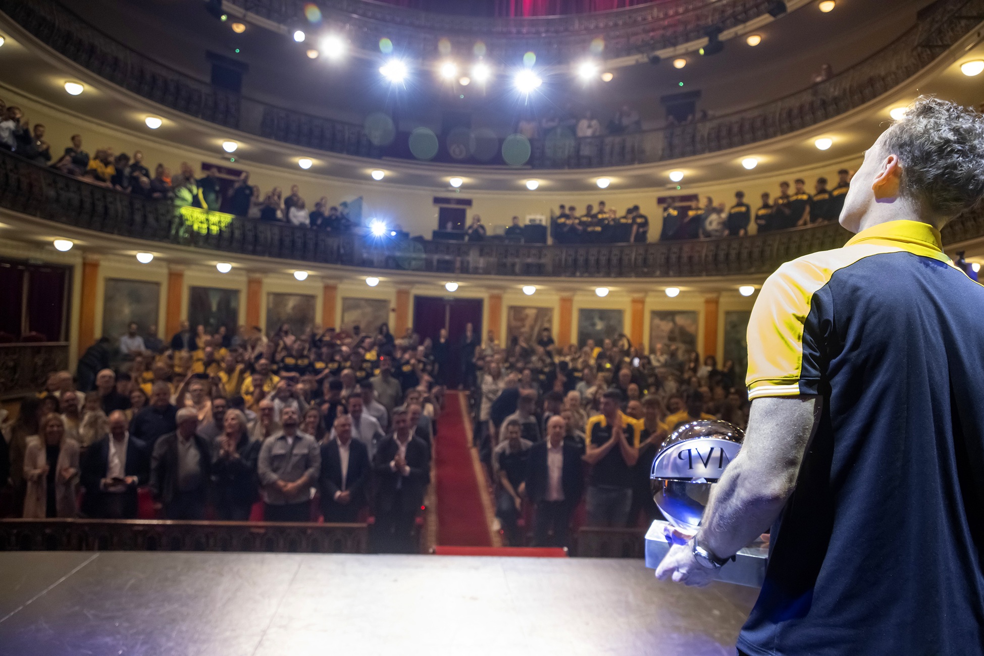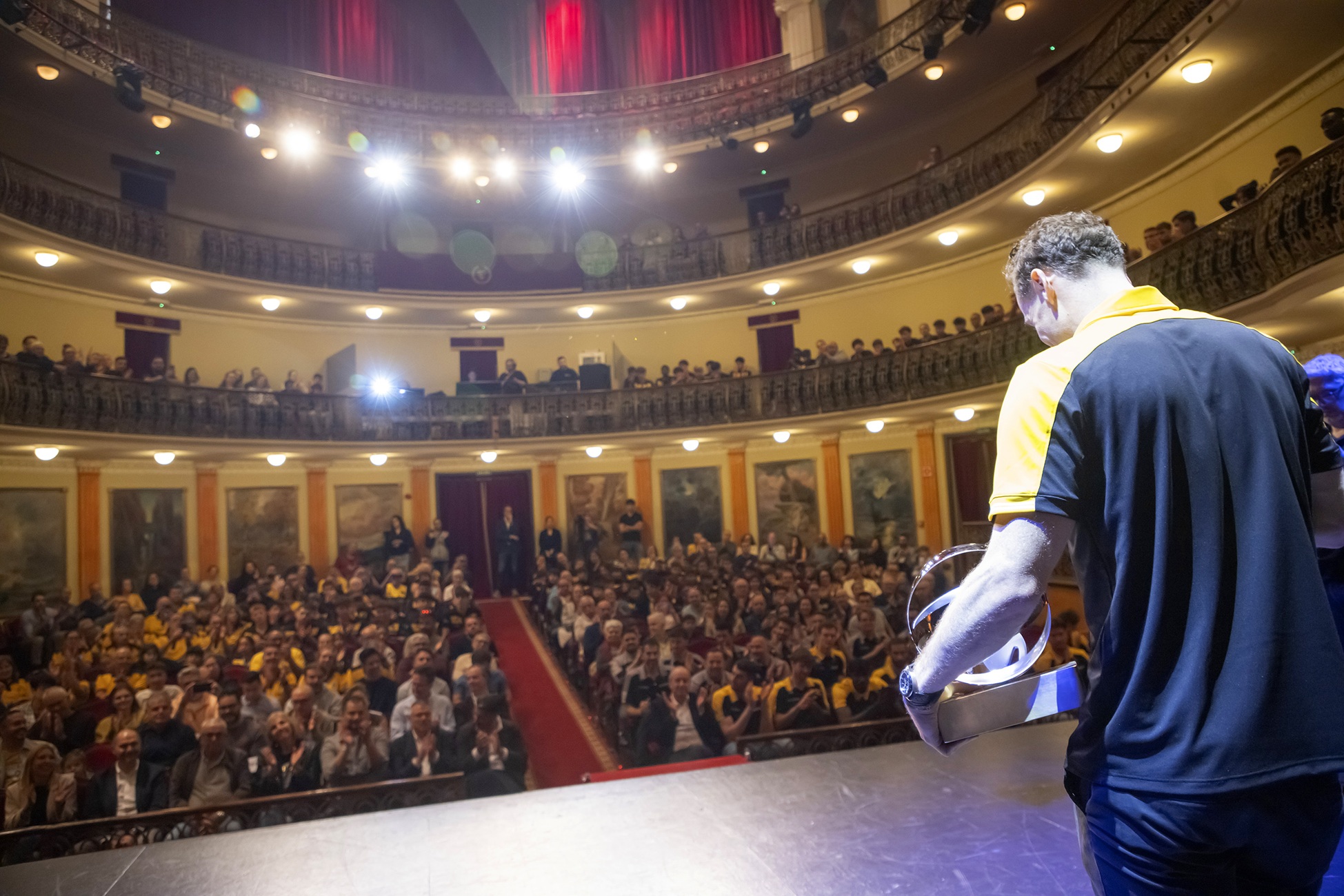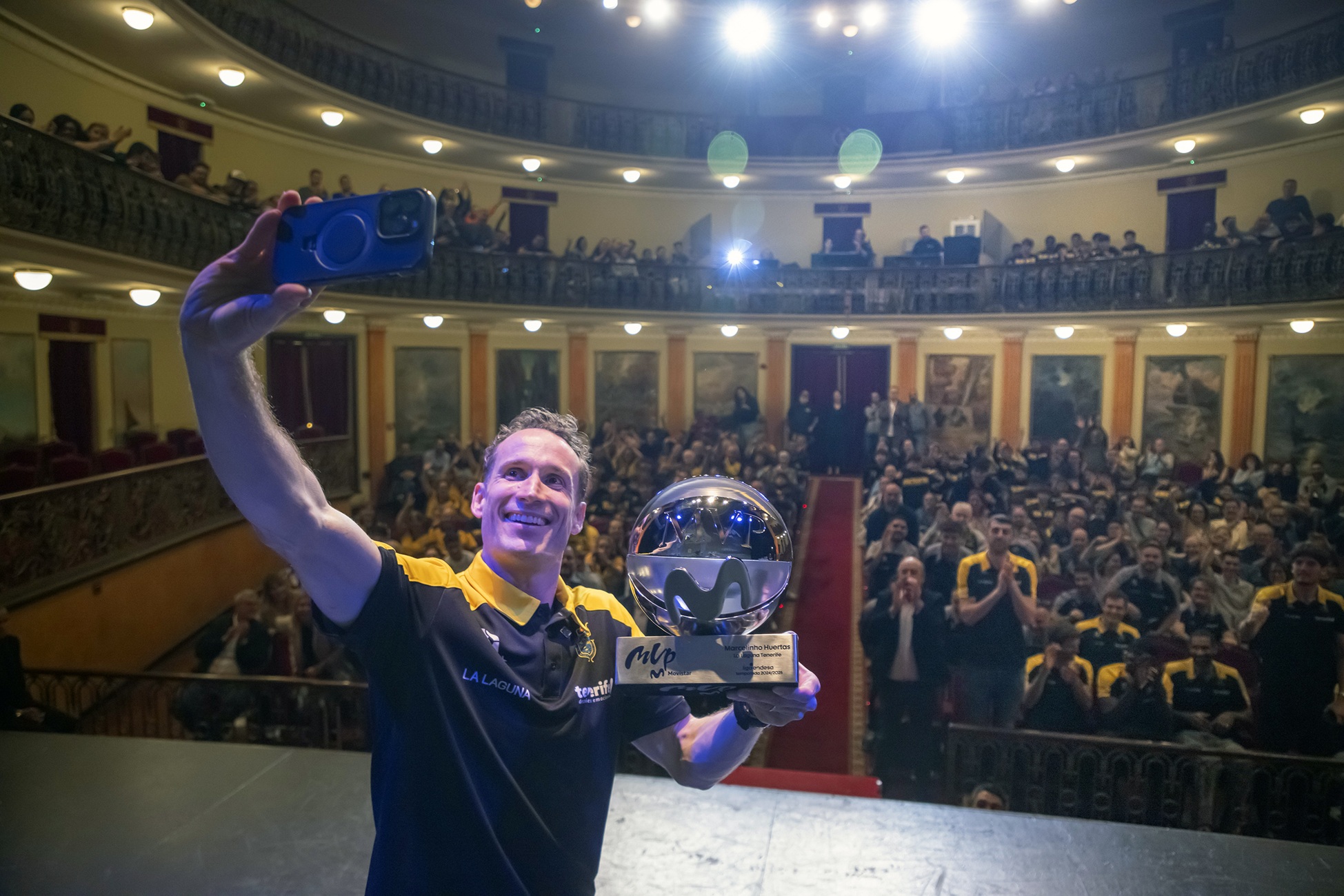 En una acción meticulosamente preparada, Marcelinho fue sorprendido en el Teatro Leal, uno de los enclaves culturales más significativos de Tenerife, por sus compañeros de equipo, canteranos y aficionados que llenaron la platea del recinto lagunero en una jornada inolvidable para la parroquia canarista, una tarde de lo más emotiva, de esas que se recordarán siempre entre los seguidores de un club que sigue haciendo historia.