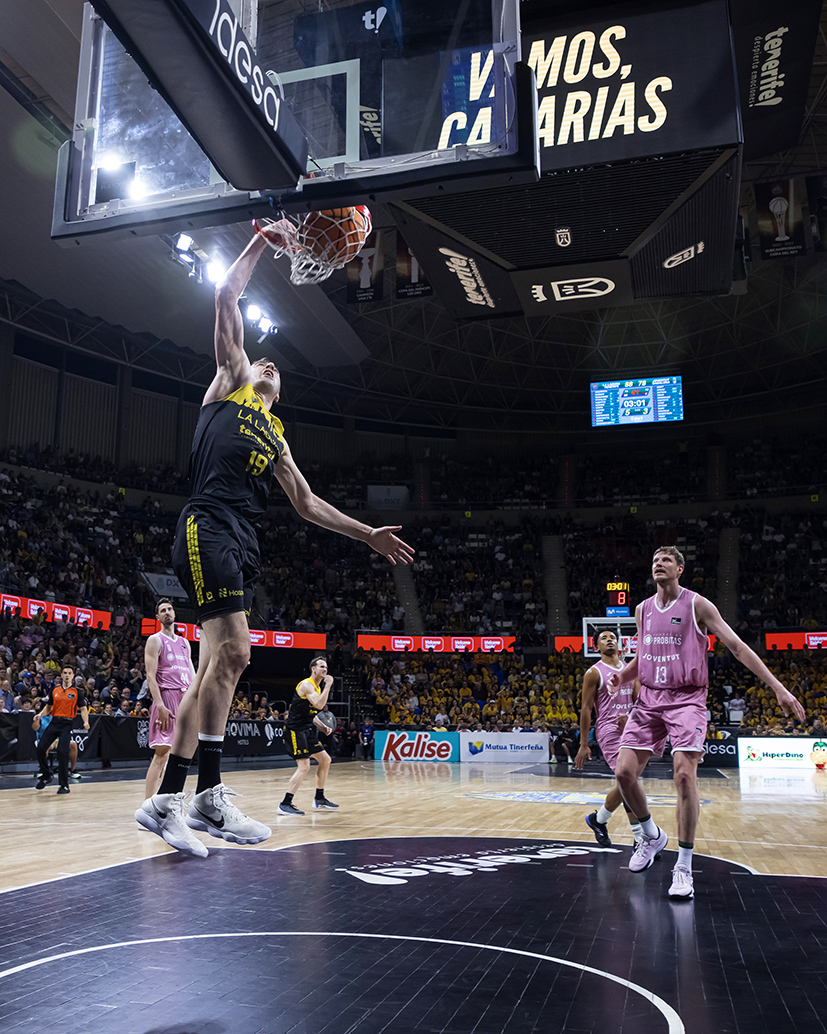 Sin embargo, lejos de tirar la toalla, el Canarias reaccionó con un 7-0, el Santiago Martín dio un paso al frente y los tinerfeños fueron con todo a por la victoria, al son de Marce (53-53). Un par de triples de Aaron Doornekamop, incluido su número 400 como aurinegro, y Tim Abromaitis, pusieron patas arriba el Pabellón; mientras el Joventut seguía resistiéndose tirando del oficio de Pau Ribas o Adam Hanga, autor de varios triplazos.
