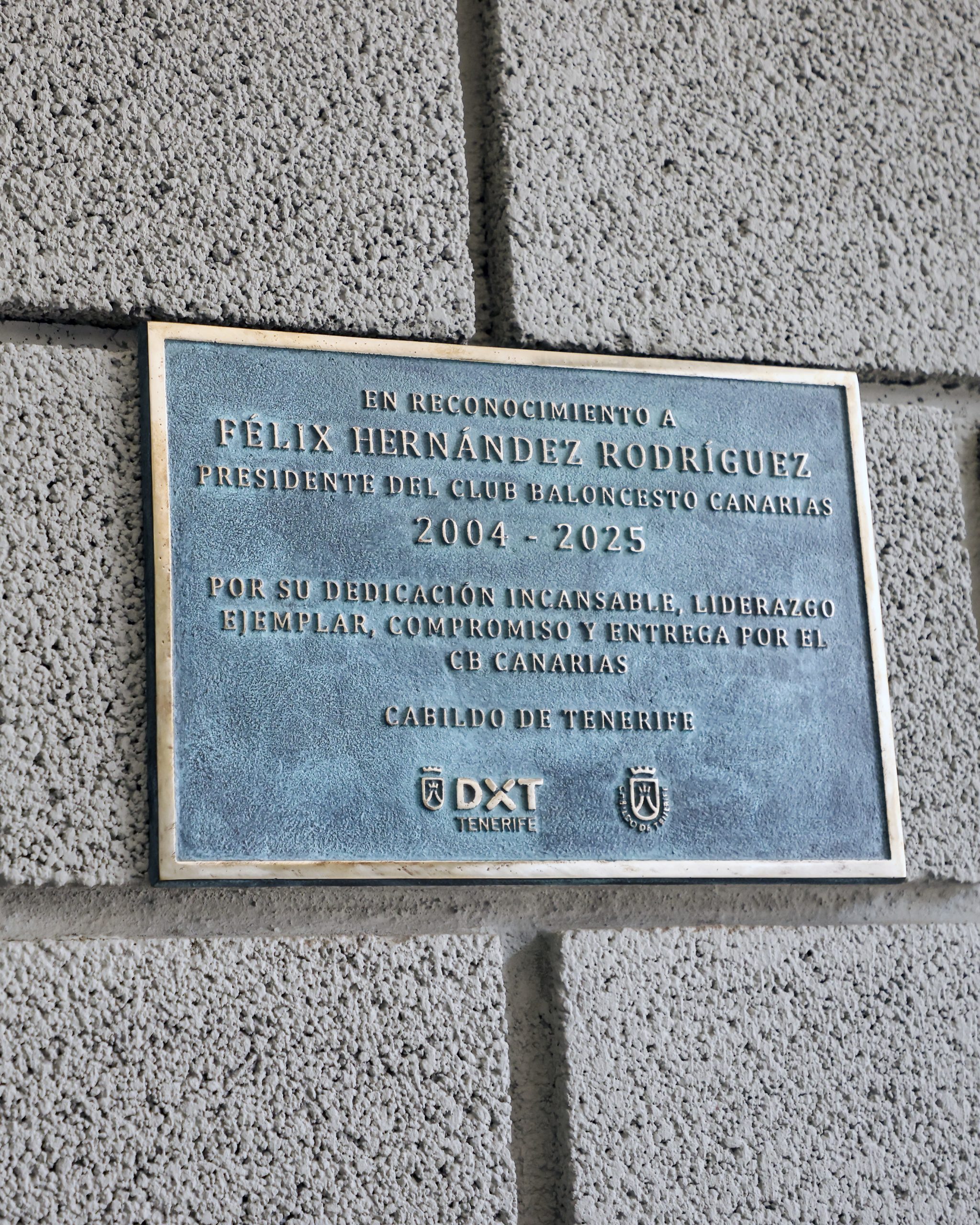 miércoles, 23 julio, 2025 - 05:07El Cabildo de Tenerife ha reconocido la trayectoria de Félix Hernández, tras sus 21 años en la presidencia del CB Canarias, con la colocación de una placa conmemorativa en el hall del Pabellón de Deportes de Tenerife Santiago Martín.