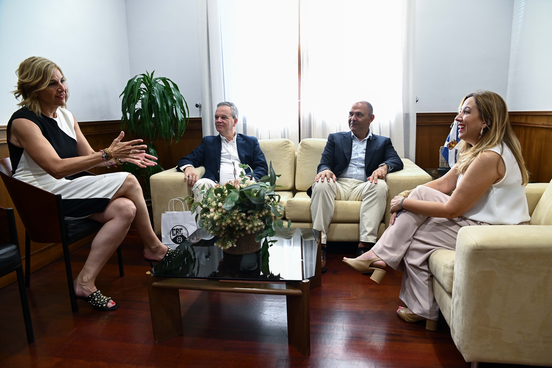 jueves, 31 julio, 2025 - 11:07El Cabildo de Tenerife ha recibido este jueves a Aniano Cabrera, nuevo presidente canarista, y a Eusebio Díaz, director general de la entidad aurinegra. El encuentro contó con la presencia de la presidenta de la institución insular, Rosa Dávila, y la consejera de Deportes, Yolanda Moliné.