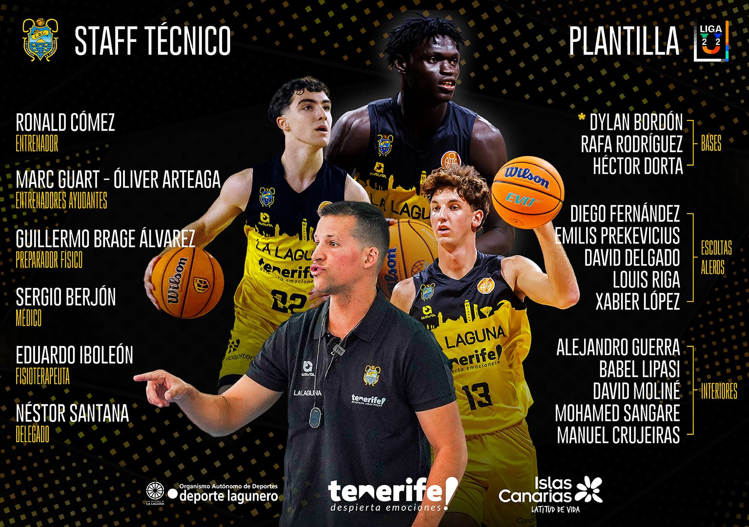 La batería de exteriores estará formada por Diego Fernández; Emilis Prekevicius, escolta lituano de la añada de 2008 que el año pasado jugó en el Barça; David Delgado, Louis Riga y Xabier López, alero tinerfeño de 2004, que llega procedente del Benicarló de Segunda FEB.