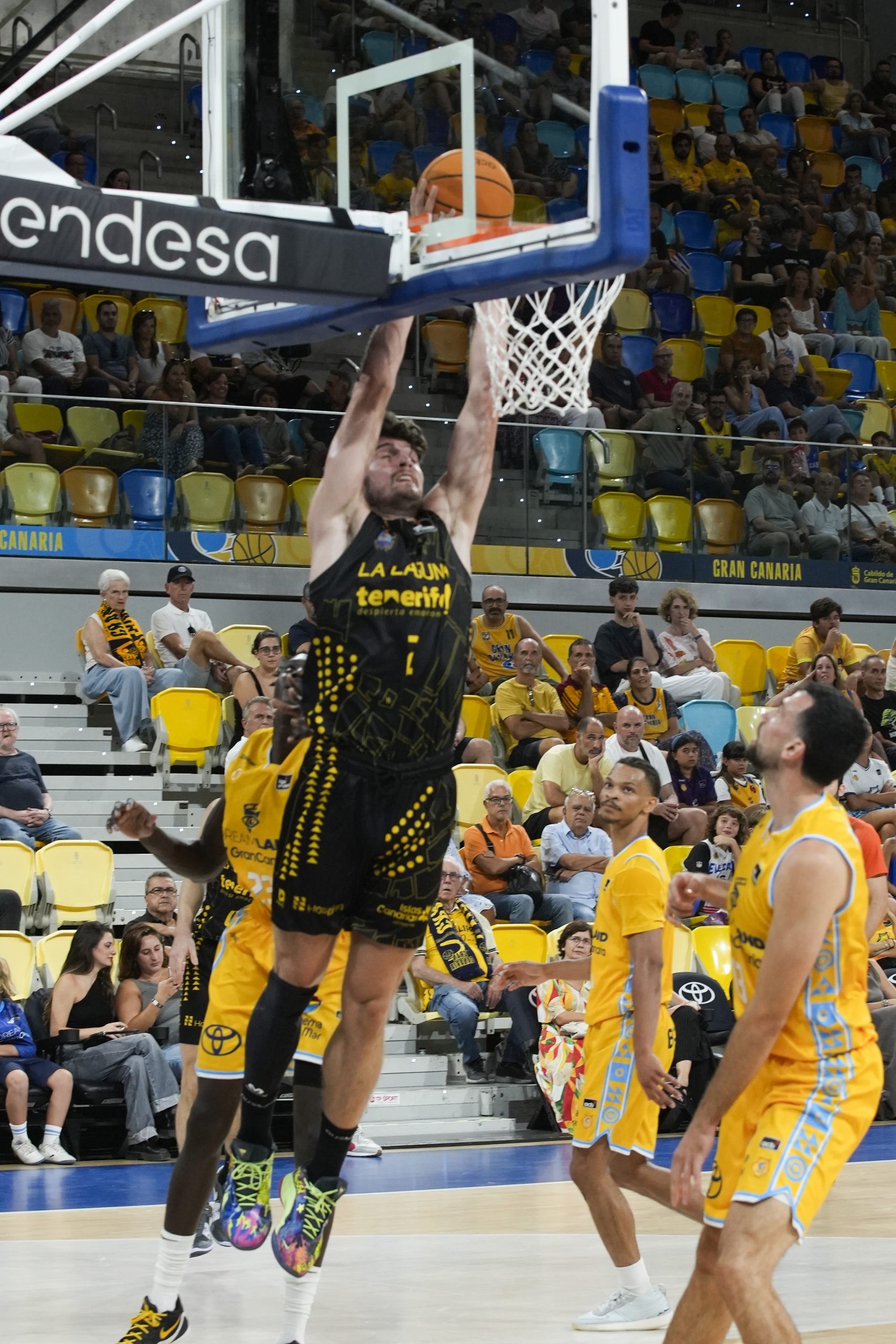 A partir de ahí, el Canarias, pese a los fallos en el tiro libre (13/20), exhibió un juego muy fluido en ataque, aprovechando el buen timing en las continuaciones de Kostas Kostadinov. Además, estuvo sólido atrás, lo que le permitió ampliar su renta camino del descanso (18-31, min. 12). Lo intentó el Granca, que no pudo contar con el colombiano Brian Angola, con varias acciones de mérito de Lucas Maniema y la calidad de Wong, pero La Laguna Tenerife respondió siempre con entereza y se fue a la pausa doce arriba (33-45), tras un triple dibujado desde la pizarra y ejecutado con eficacia por Marce y Tim Abromaitis.