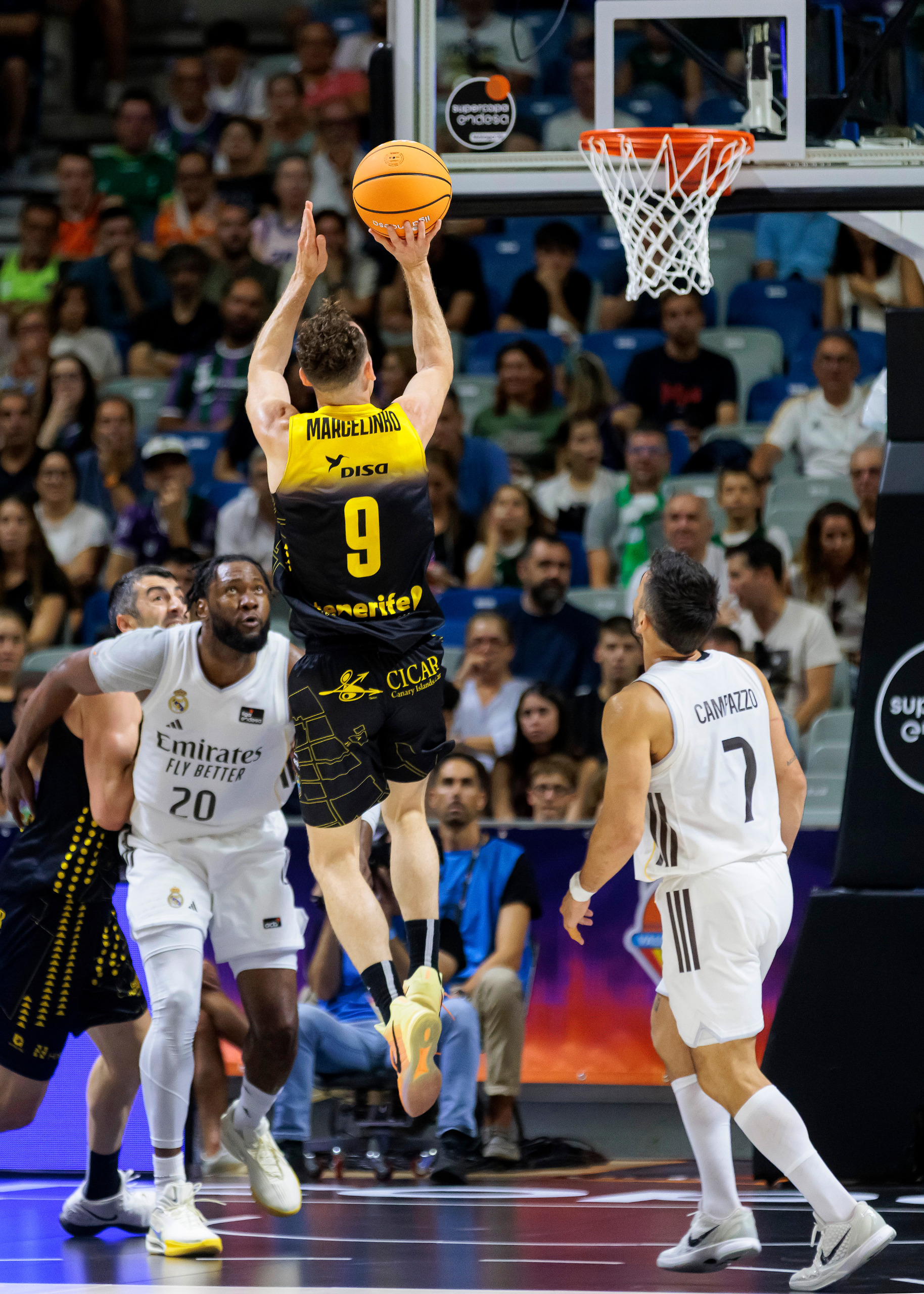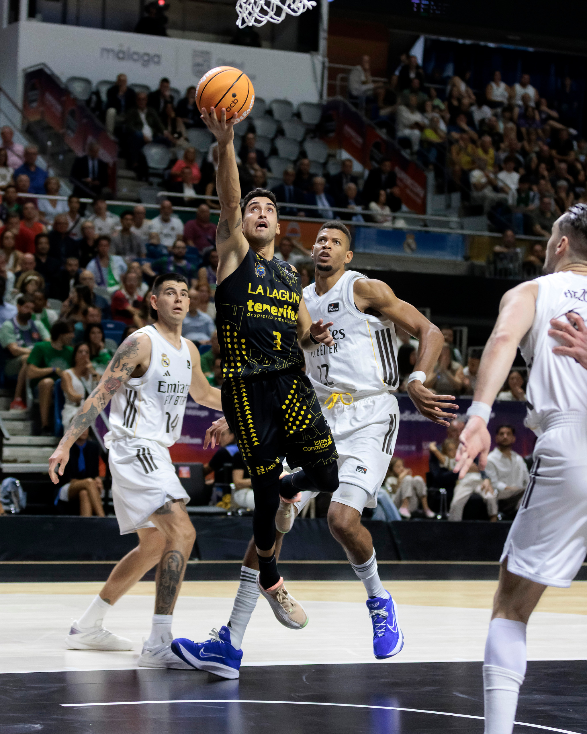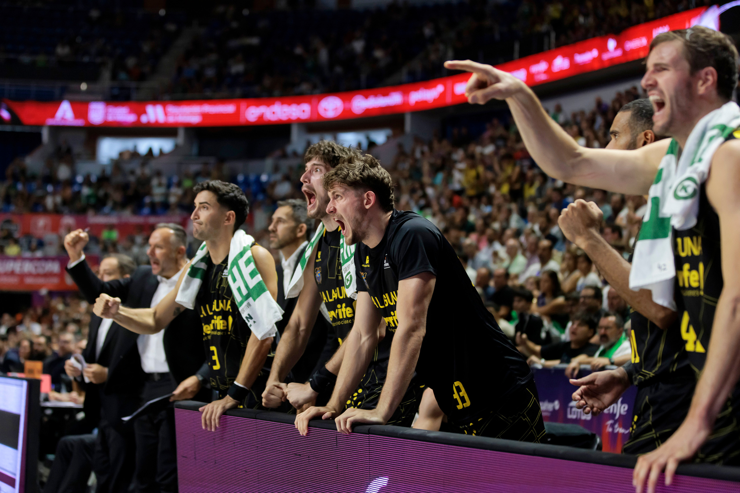 sábado, 27 septiembre, 2025 - 10:09¡Por muy poquito! La Laguna Tenerife se quedó este sábado noche a las puertas de jugar la primera final de su historia de la Supercopa Endesa, después de tener contra las cuerdas al Real Madrid (72-71), vigente campeón de liga. Dos tiros libres de Gaby Deck a falta de 20 segundos; y el posterior triple fallido de Jaime Fernández sobre la bocina, decantaron a favor del equipo blanco un partido que los aurinegros pelearon hasta el último resuello.
