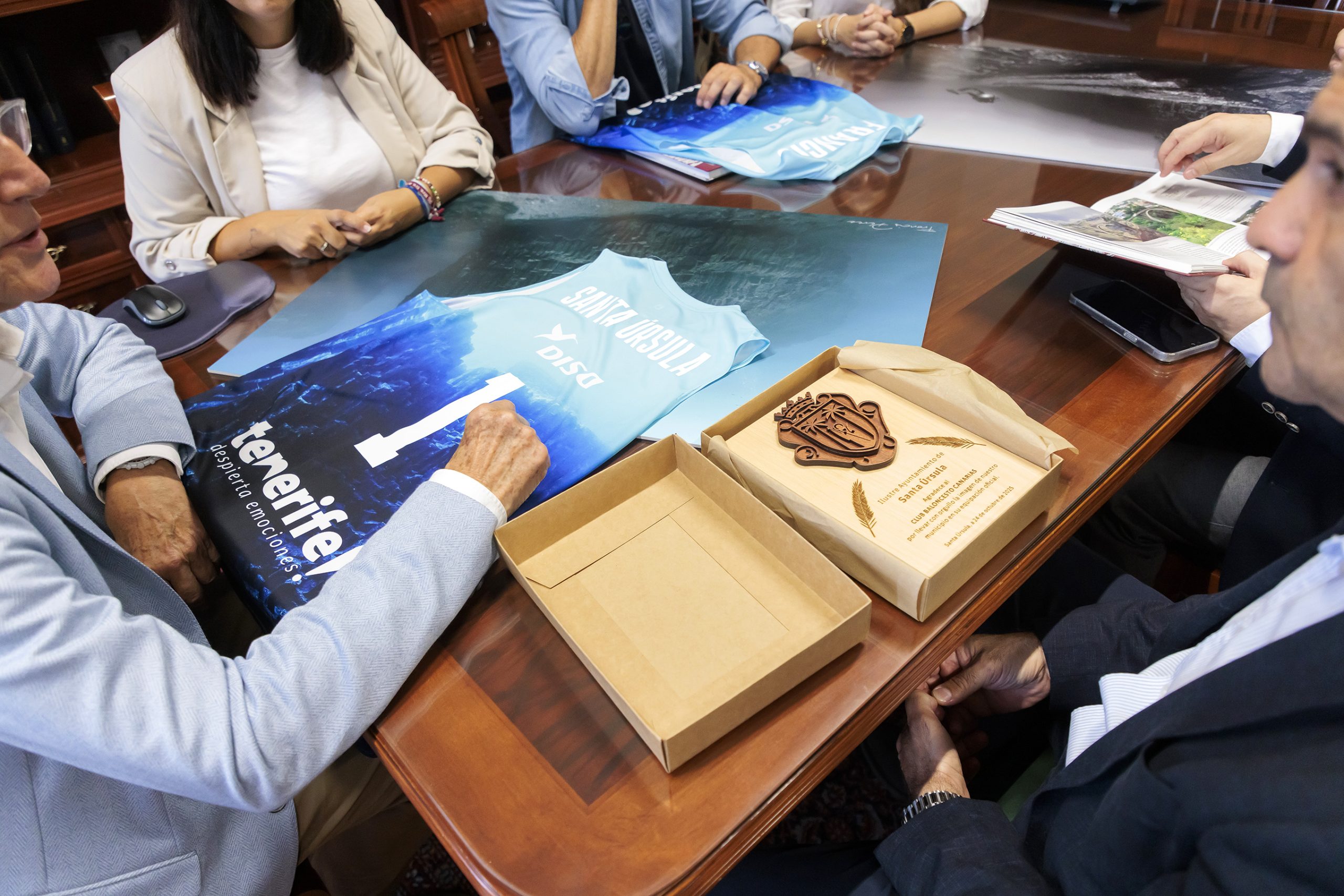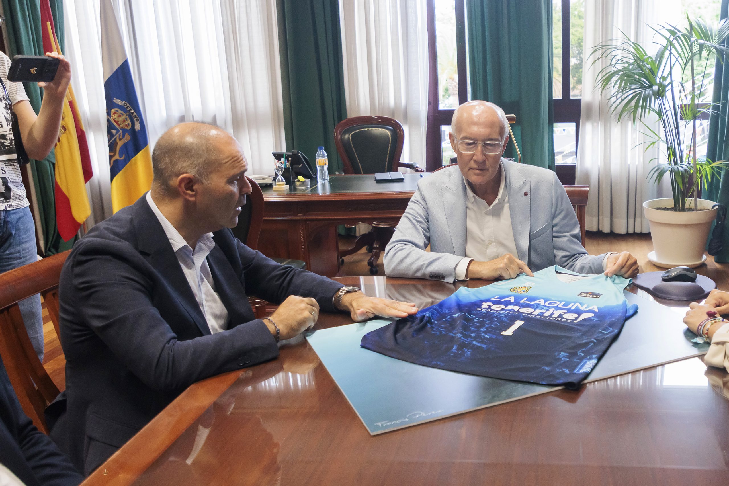El Ayuntamiento de Santa Úrsula realizó esta mañana una recepción oficial a representantes del club canarista como reconocimiento a la labor de visibilidad y difusión de ‘La Rapadura’, que lleva a cabo esta temporada el primer equipo aurinegro, La Laguna Tenerife, con motivo de la equipación especial que estrenará este sábado, ante el Unicaja Málaga (Santiago Martín, 19:00 hora canaria).