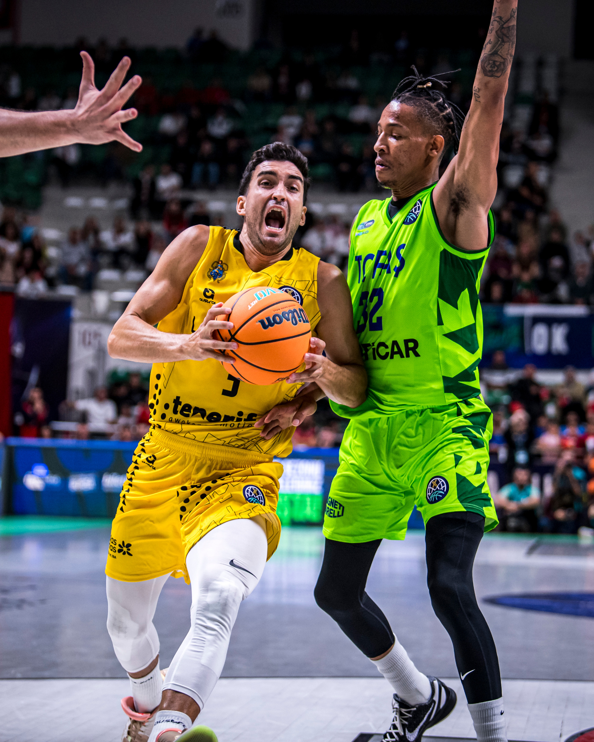 Con Fran Guerra y Tim Abromaitis pronto con problemas de faltas, La Laguna Tenerife se amparaba en su profundidad de banquillo para mantener el listón; si bien los turcos endurecían su defensa para estrechar el cerco (17-25, 24-32). No le tembló el pulso a los canaristas, que tiraban de oficio y paciencia para mantener la contienda en su trinchera y jugar sus bazas con fluidez en ataque.