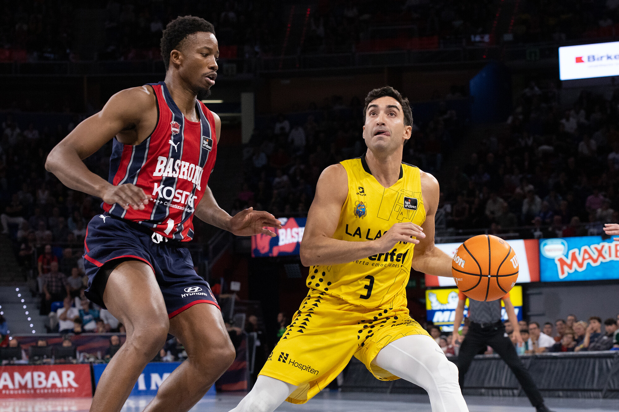 domingo, 2 noviembre, 2025 - 09:11La Laguna Tenerife sufrió este domingo su primera derrota de la temporada, al ceder ante el Baskonia de Euroliga (89-79), en un partido muy físico que los anfitriones llevaron a su terreno en la segunda mitad. Un mal tercer cuarto de los aurinegros condenó sus opciones tras haber opositado con argumentos al triunfo en el primer acto, especialmente en labores defensivas.