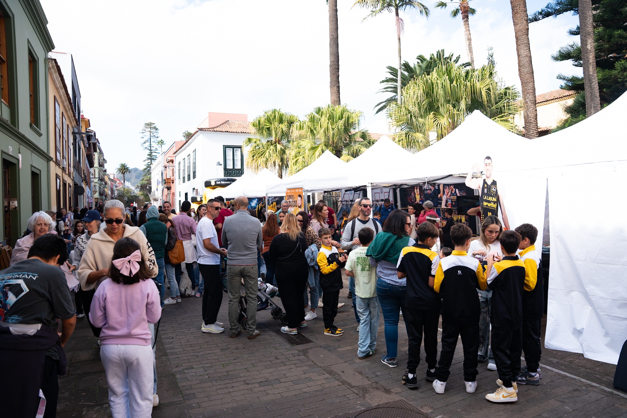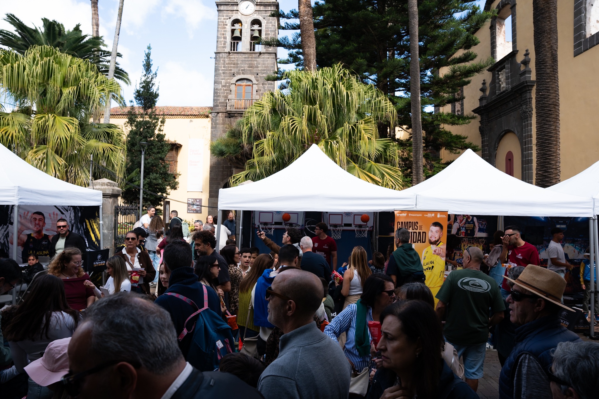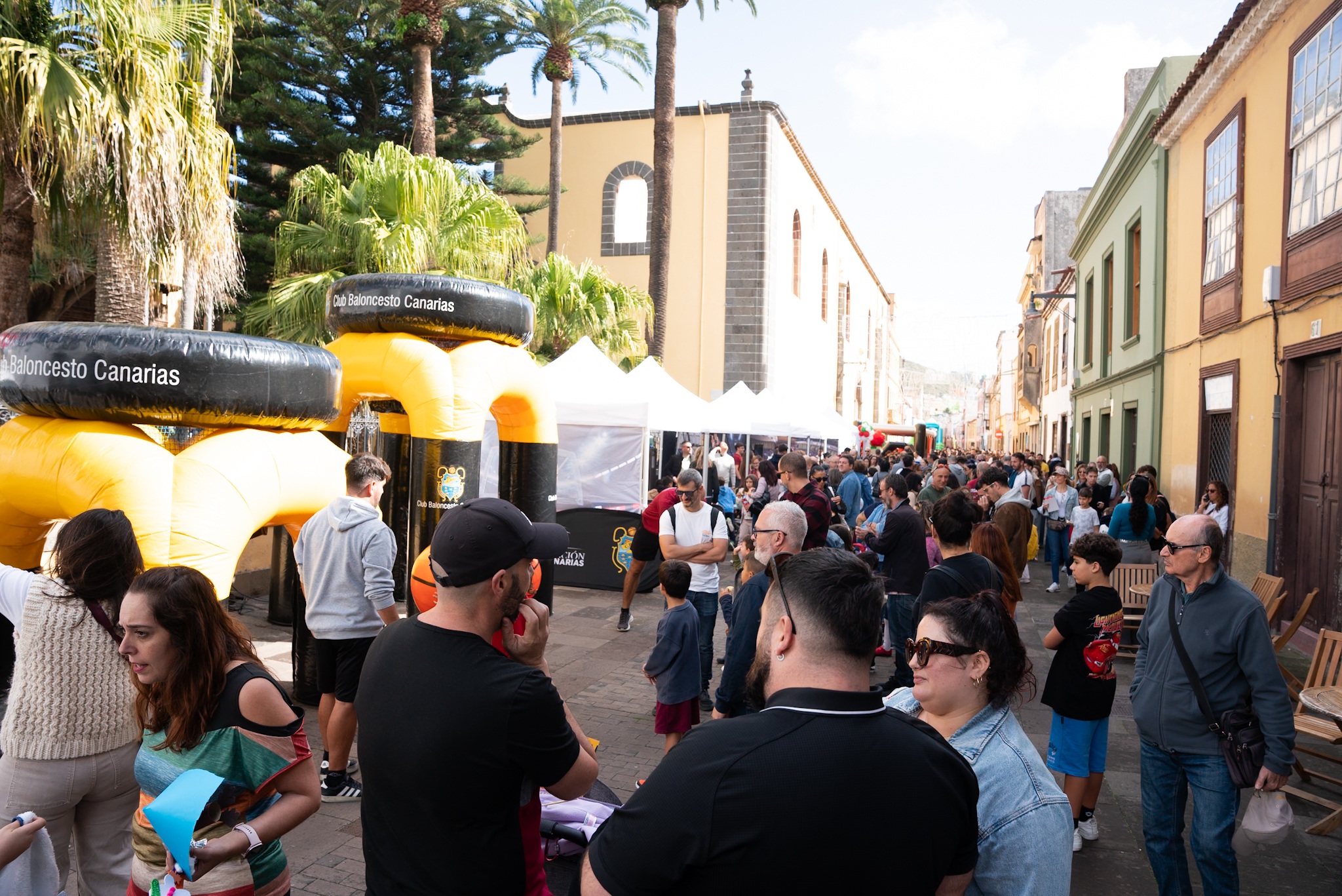 El estand canarista, ubicado en la calle San Agustín frente al Instituto Cabrera Pinto, congregó a cientos de personas a lo largo de la jornada sabatina, con un amplia variedad de actividades como la actuación del dance crew Estée Lauder, zonas de dibujo, talleres de chapas, talleres de zumos Naturalmente Margui y Elaborado en Canarias para la promoción de hábitos de vida saludables, canasta hinchable XXL, mini canastas, 360º con M2Sinergia, así como la amenización del speaker habitual de los partidos que se disputan en el Pabellón Santiago Martín y la presencia de la mascota Auri.