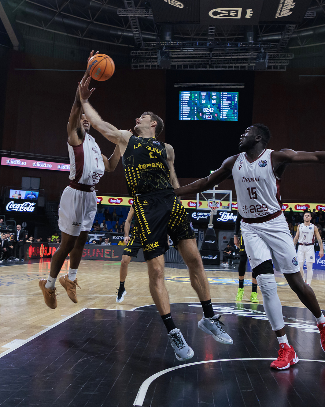 Ocurrió mediado el tercer cuarto (48-50, tras un parcial de 9-0, con dos triples de por medio de Doornekamp) y volvió a suceder camino del cierre en varias ocasiones. El Trapani exprimía el talento de sus pequeños y el Canarias no jugaba con la fluidez deseada. Los aurinegros sufrían incluso la descalificación de su entrenador Txus Vidorreta por protestar una de las muchas decisiones controvertidas que tomó el trío arbitral.