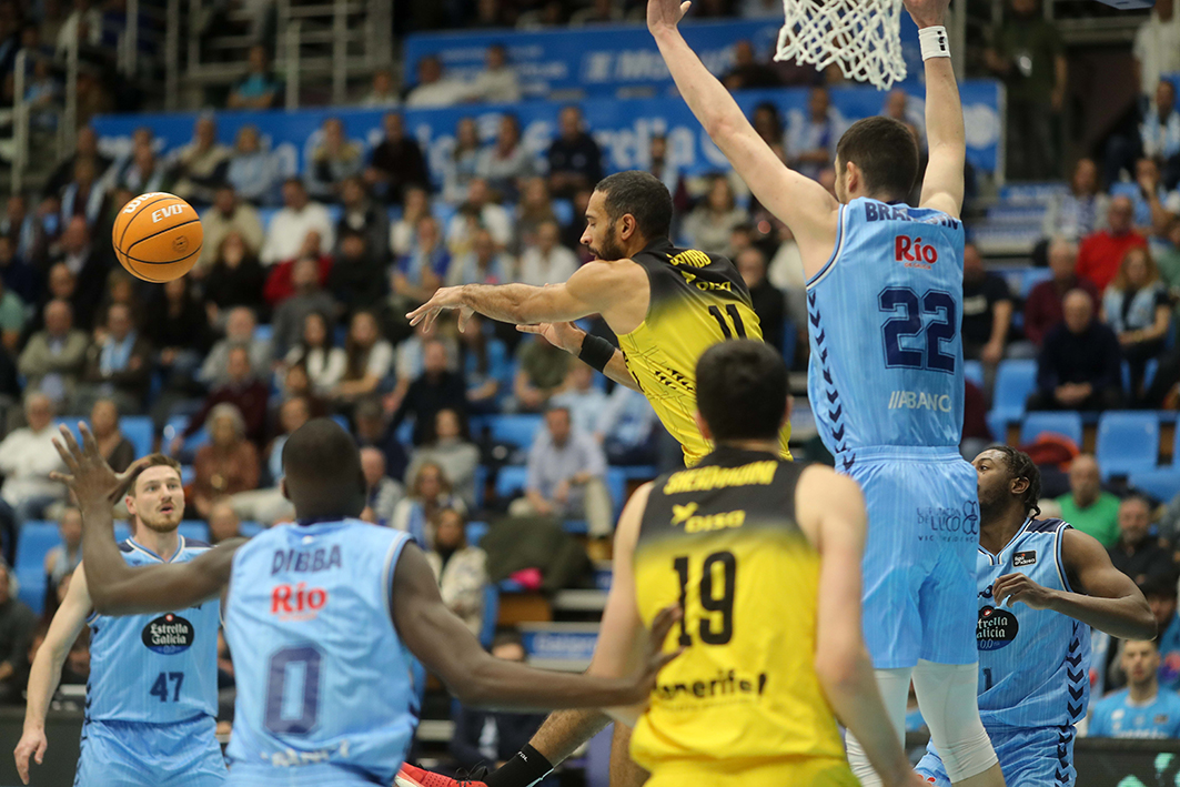 Los de Txus Vidorreta se fajaban además muy bien en la batalla del rebote (hasta siete capturas ofensivas al descanso), pero los gallegos no perdían el tono y se agarraban al encuentro con todo para irse a la pausa ocho abajo (51-59), tras una primera mitad muy vistosa. Tras el paso por vestuarios, el Canarias dio una vuelta de tuerca más a su excelente plan de partido con una salida casi en tromba, gracias a un parcial de 4-13, y pintó ya la contienda de aurinegro.