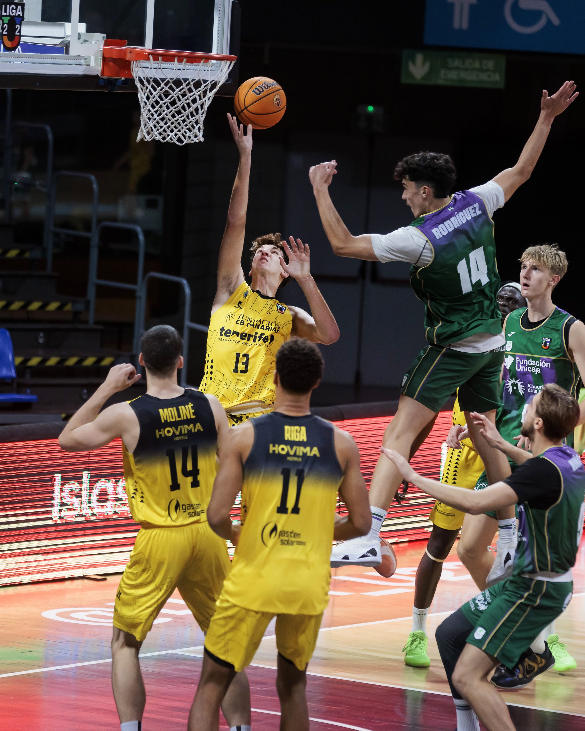 El pulso nació un tanto frío y errático por ambas partes, hasta que el equipo tinerfeño comenzó a sumar de tres en tres, bien desde más allá del arco, con aciertos de Xabi López y Mohamed Sangare, o bien con un 2+1 del primero (13-9, 16-13).