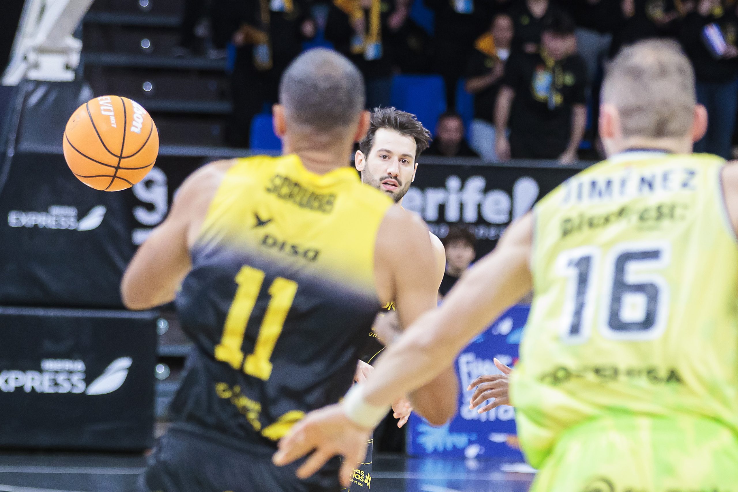 El choque nació con los anfitriones fallones desde el triple (0/5 de inicio), pero cargando bien el rebote ofensivo y fajándose bien atrás. El buen hacer en la pintura de Gio Shermadini contrarrestaba las acciones de Automane Diagne y el encuentro crecía parejo (9-9), hasta que varias acciones de mérito consecutivas de Wes Van Beck permitían a los tinerfeños coger las riendas del electrónico (17-13).