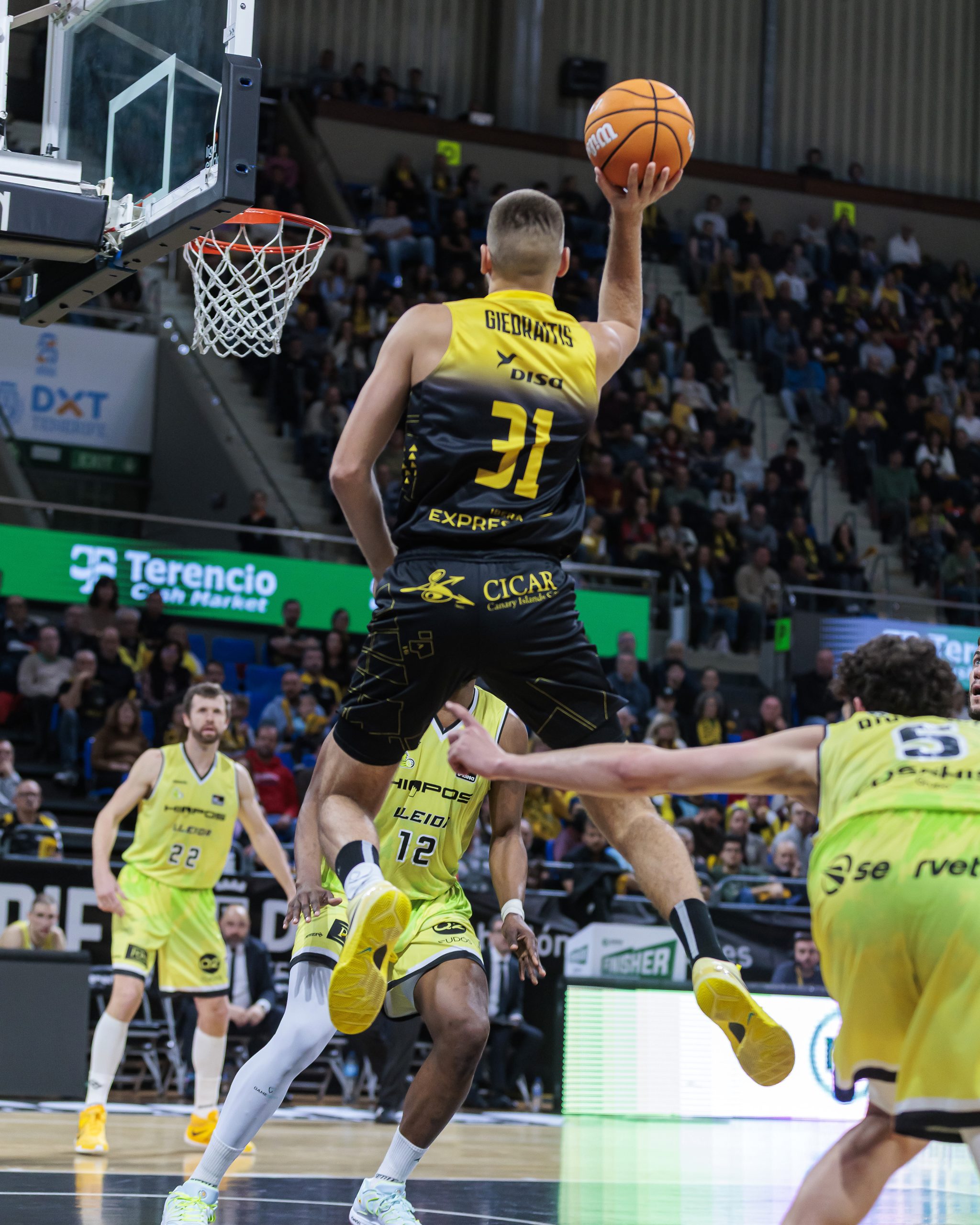 Reaccionó entonces el Lleida con un parcial de 0-8 (31-27), pero el pertinente tiempo muerto de Txus, el control del rebote y el paso al frente de todo el bloque en defensa, incluidos un par de tapones y un robo de un Gio omnipresente (12+5 al intermedio) permitían a los aurinegros estirar de nuevo su renta para irse diez arriba a la pausa (49-39).
