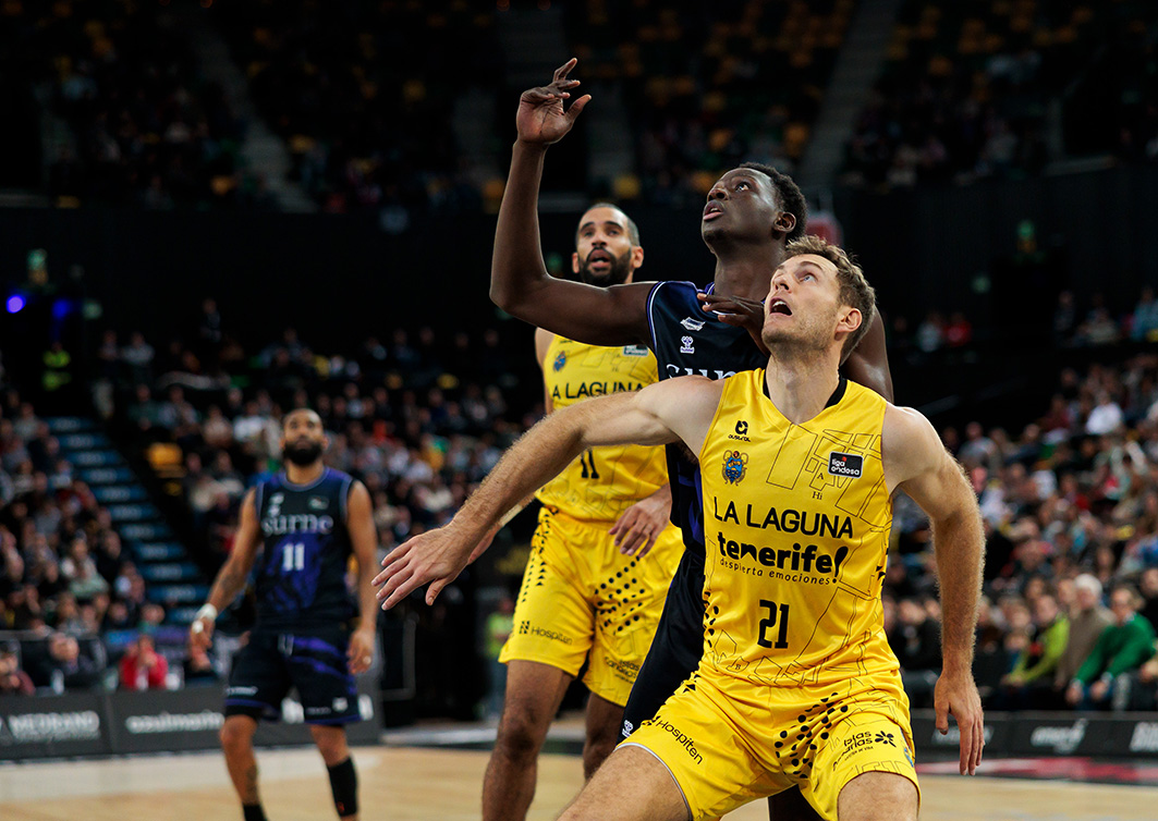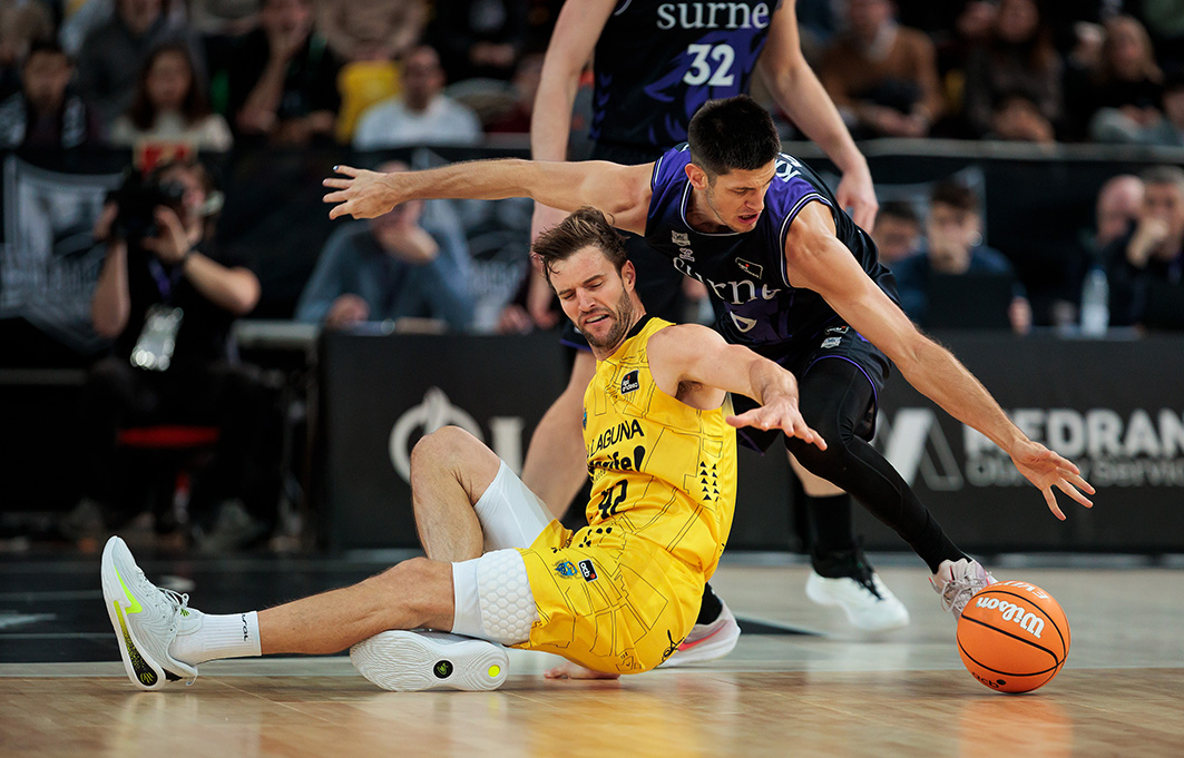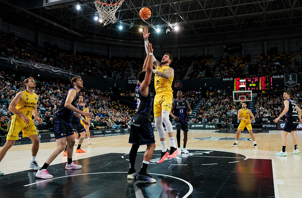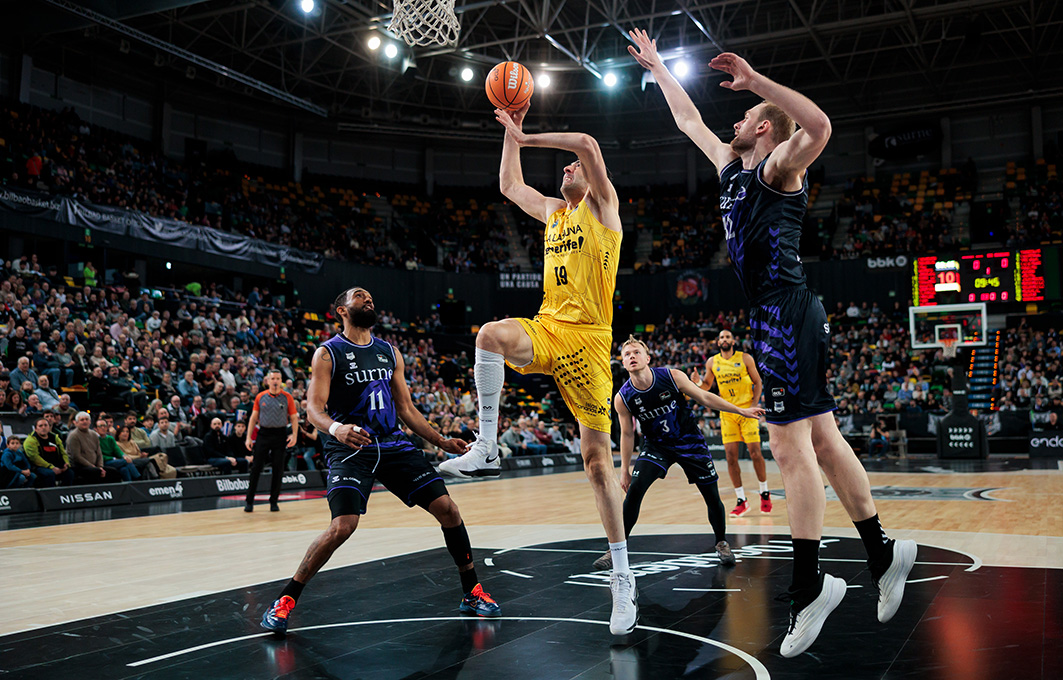 Derrota en Miribilla. Un mal segundo cuarto (31-12) y un vendaval de triples locales en toda la primera mitad (13/17 al descanso) condenaron este sábado noche a La Laguna Tenerife en su visita al Surne Bilbao Basket (95-78). Muy condicionado por eso, lo intentó todo el equipo aurinegro para apretar la contienda, pero sus amagos de reacción tras el receso no tuvieron la continuidad necesaria ante un adversario que firmó un gran partido y se llevó la victoria de manera merecida.