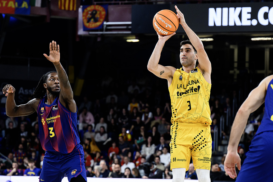 El Canarias imponía entonces su juego, sólido atrás y con paciencia en ataque para hacer valer sus virtudes en la creación de espacios y explotar el extra pass; mientras el Barça lo intentaba con balones al poste bajo a Toko Shengelia. La segunda unidad aurinegra mantenía el listón alto y los laguneros lograban incluso abrir una pequeña brecha en el electrónico, tras cuatro puntos consecutivos de Fran Guerra y una buena penetración de Jaime Fernández (17-25, min. 11).