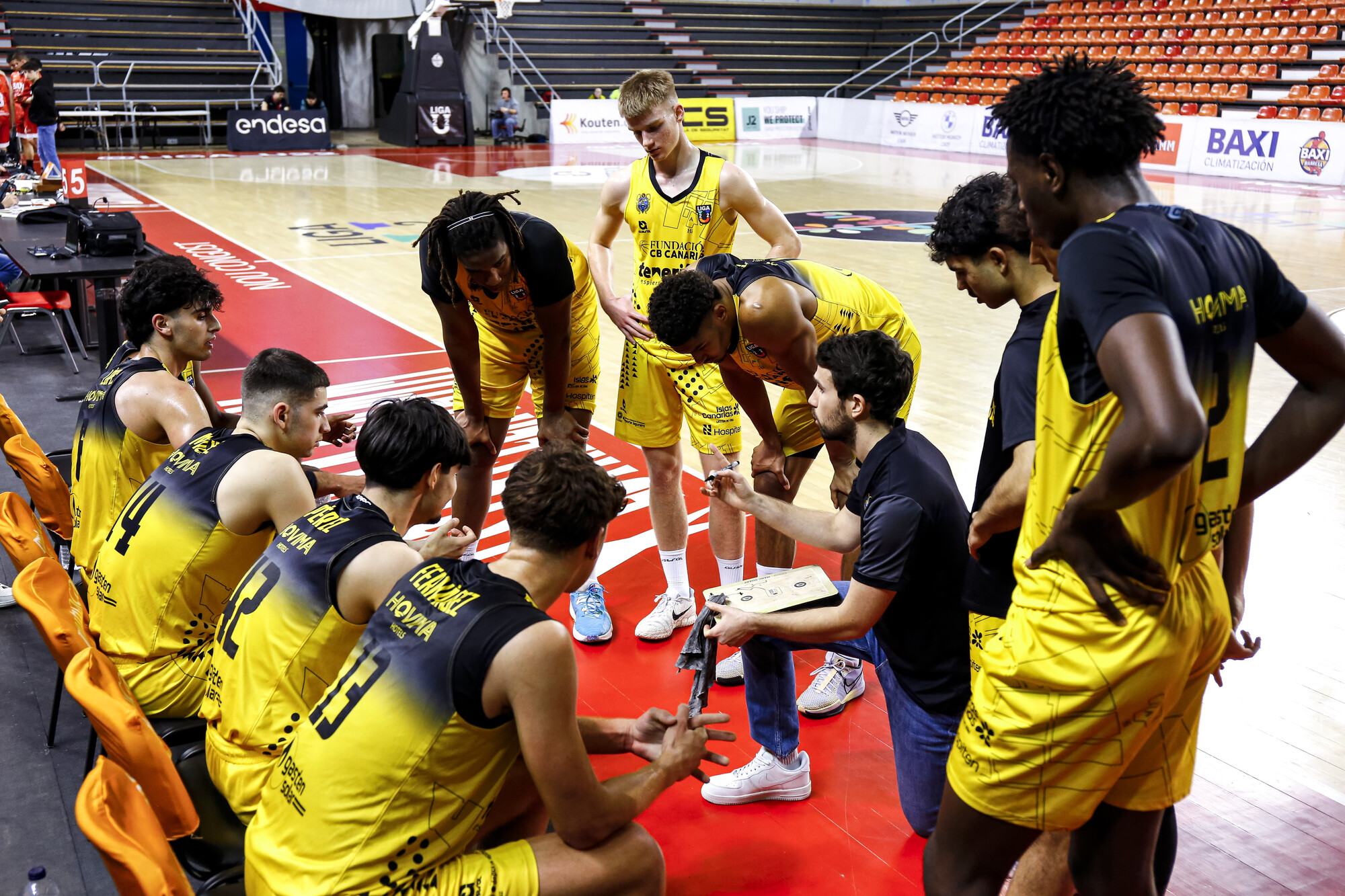 Arrancó muy metido el conjunto insular, con Diego ejerciendo de base ante las ausencias mencionadas de los dos directores de juego habituales de la escuadra aurinegra; y con Xabi asumiendo galones, omnipresente como siempre en la batalla del rebote y sacando el máximo provecho a su facilidad para penetrar (16 puntos y 8 rebotes al descanso).