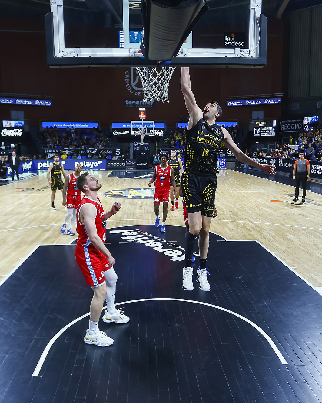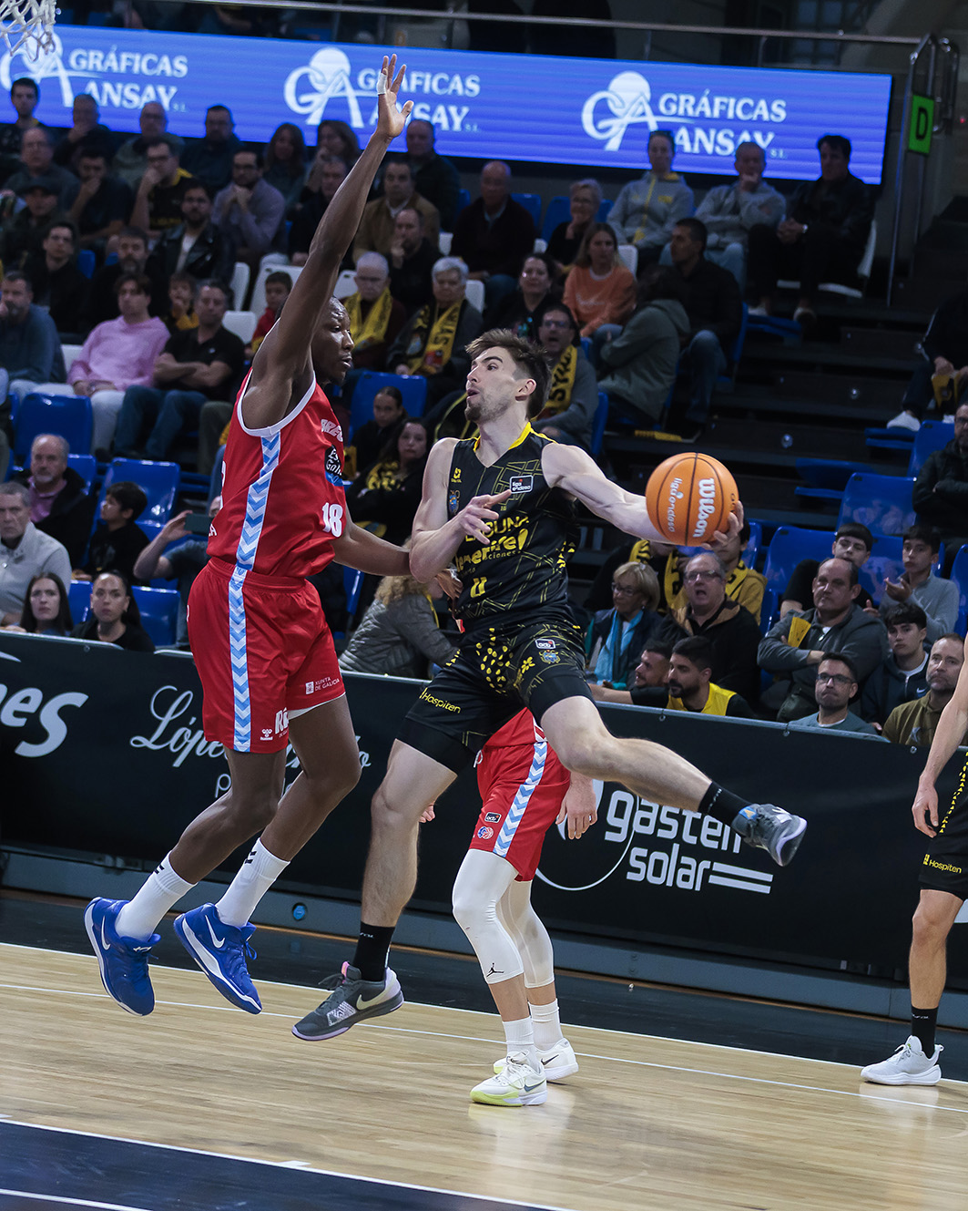 El Canarias mordía en defensa y barría varios balones clave en ataque para luego encarrilar su triunfo con segundas oportunidades. Por ahí, hubo varios rebotes ofensivos fundamentales de Scrubb, Wesley o Doornekamp, un buen tapón de Joan Sastre atrás y un Gio Shermadini muy incisivo, que aprovechaba para rematar con mates varias asistencias de mérito de sus compañeros, todas ellas rumiadas desde la paciencia del extra pass.
