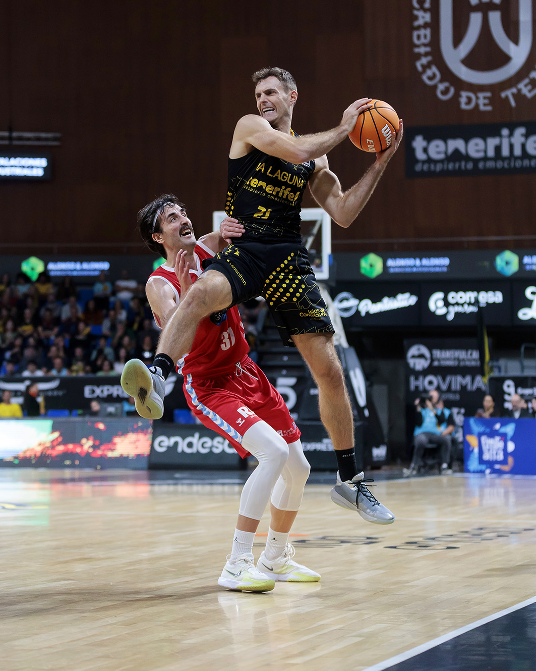 Lo intentaba el Canarias, con un par de robos de Sastre atrás, un buen trabajo del bloque en la batalla del rebote y con Bruno Fitipaldo y Aaron Doornekamp rematando desde el triple varias circulaciones con criterio para mandar el partido igualado al receso (45-45).