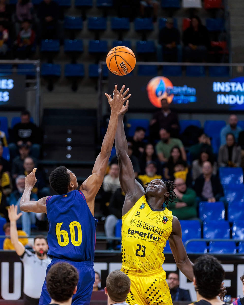 sábado, 28 febrero, 2026 - 07:02El segundo reto aurinegro en dos días se saldó con una derrota, pero con sensaciones muy positivas y la cabeza muy alta. El Fundación CB Canarias se vació este sábado ante el líder del grupo A de la Liga U, escasas horas después de medirse a Joventut y acabó cediendo en un duelo igualado ante todo un filial azulgrana que tuvo que emplearse a fondo para salir victorioso del Santiago Martín (99-104).