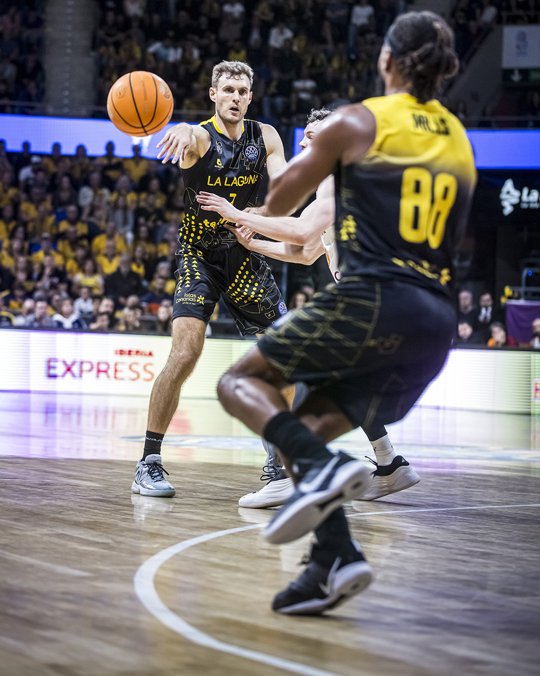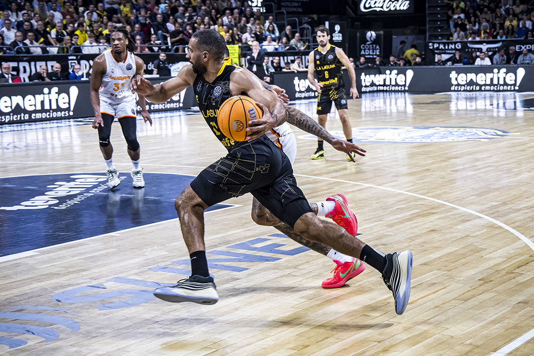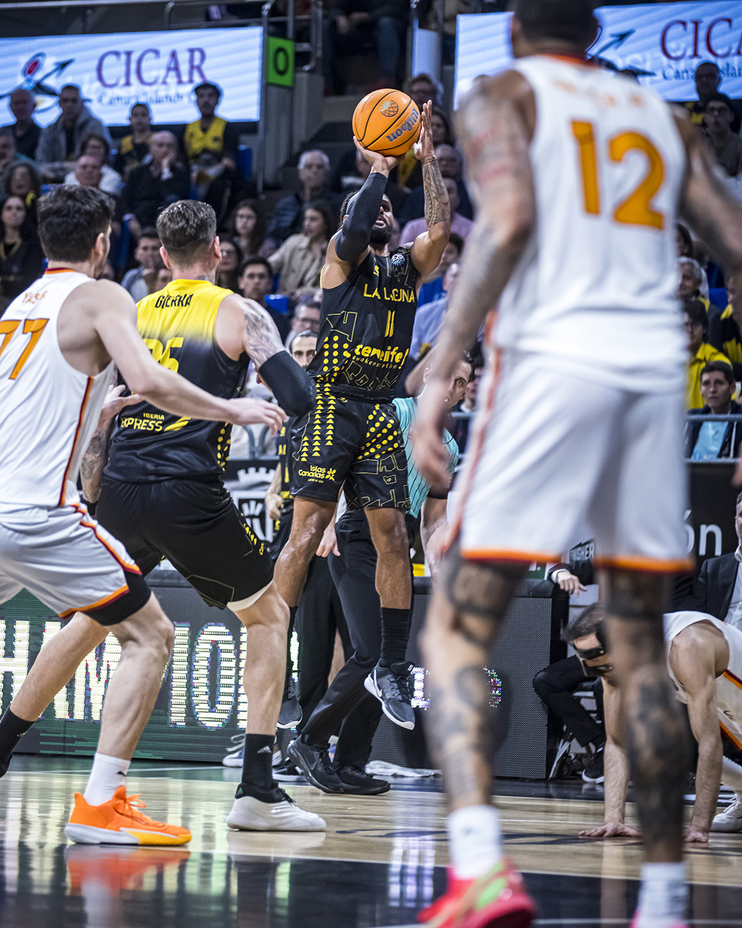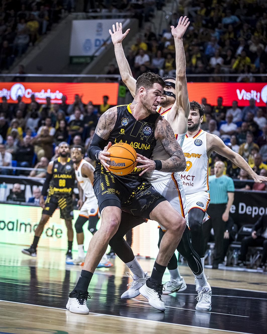 Tras el paso por vestuarios, La Laguna Tenerife volvió a sacar su versión más sólida e insinuó varias veces con romper el encuentro. Lo hizo primero con Gio marcando territorio en la pintura; luego con Mills exhibiendo su capacidad anotadora; y camino del último cuarto, con varias acciones de mérito de Jaime Fernández y Fran Guerra (61-53).