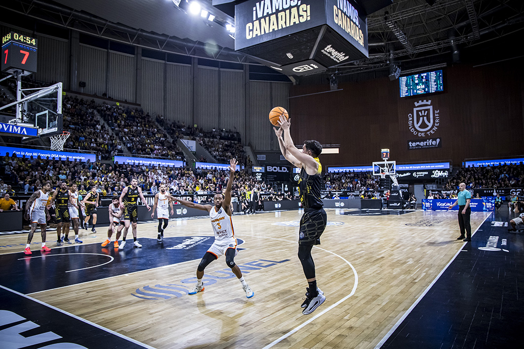 Conforme crecía el partido, los tinerfeños sufrieron pronto los problemas de faltas de Bruno Fitipaldo y Gio Shermadini; y el Galatasaray iba sumando argumentos desde su banquillo, aprovechando la explosividad de McCollum y la buena mano desde el perímetro de Meeks. Patty Mills tiraba de talento para liderar un nuevo arreón canarista (34-26), pero un parcial de 0-10 camino del receso, con los visitantes sumando de tres en tres, les situaba uno arriba con la llegada del descanso (40-41).