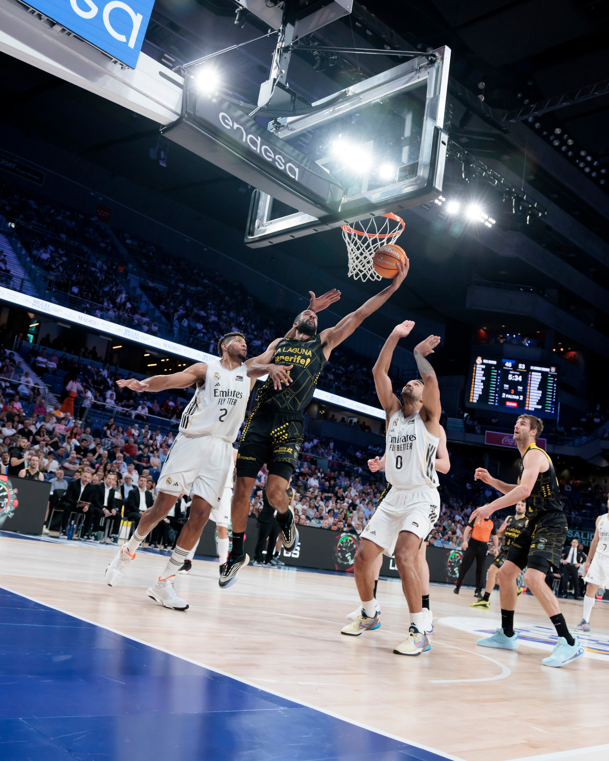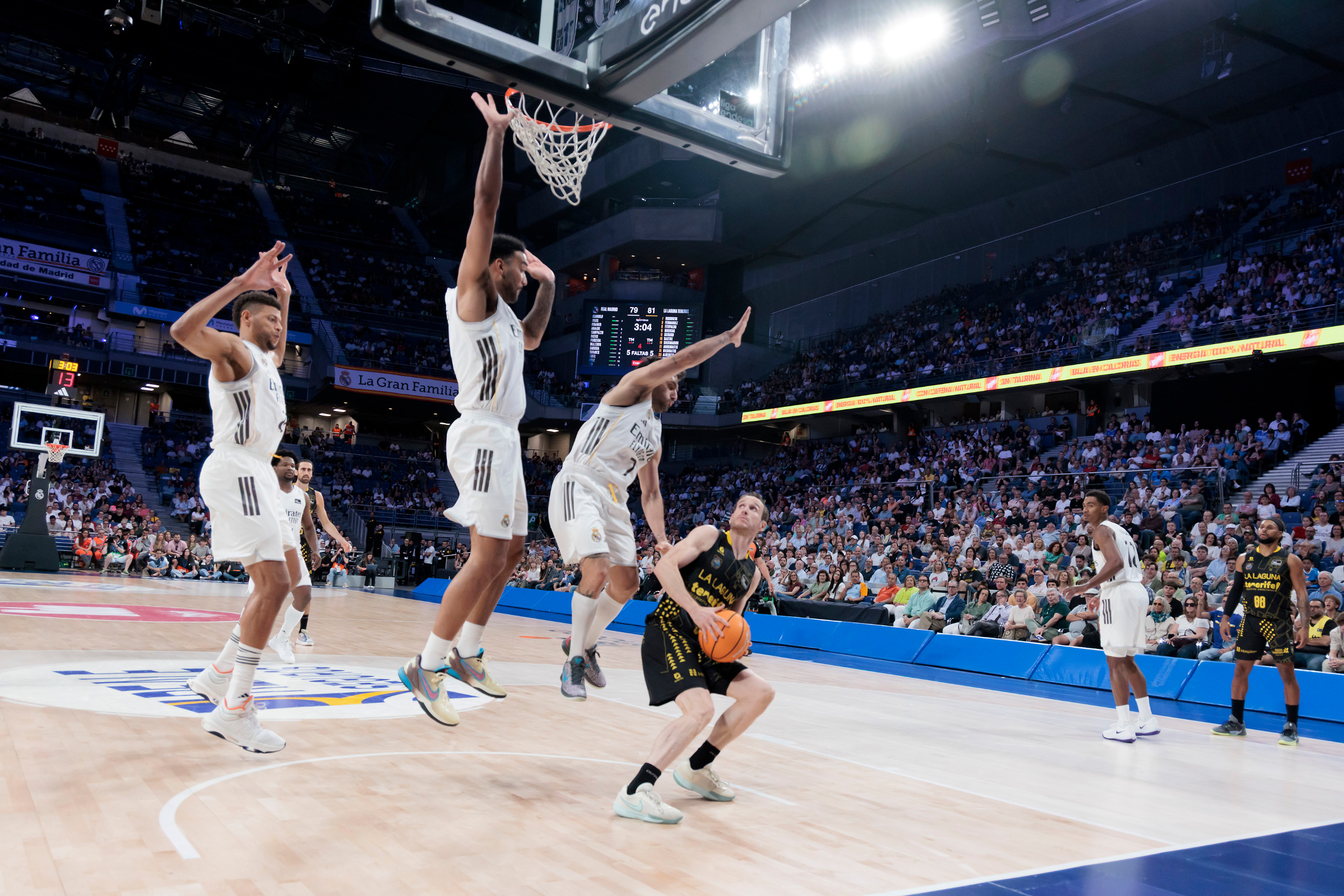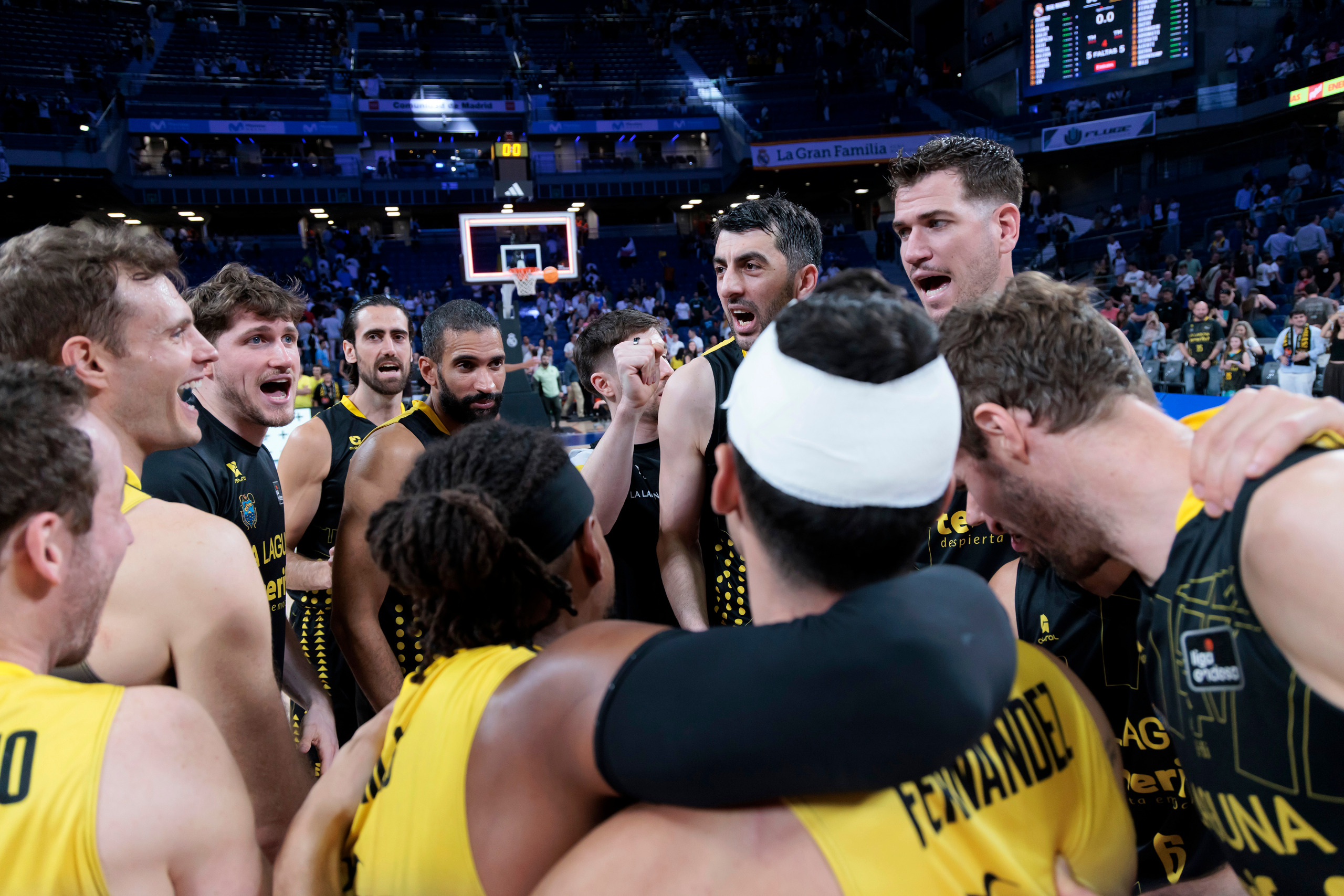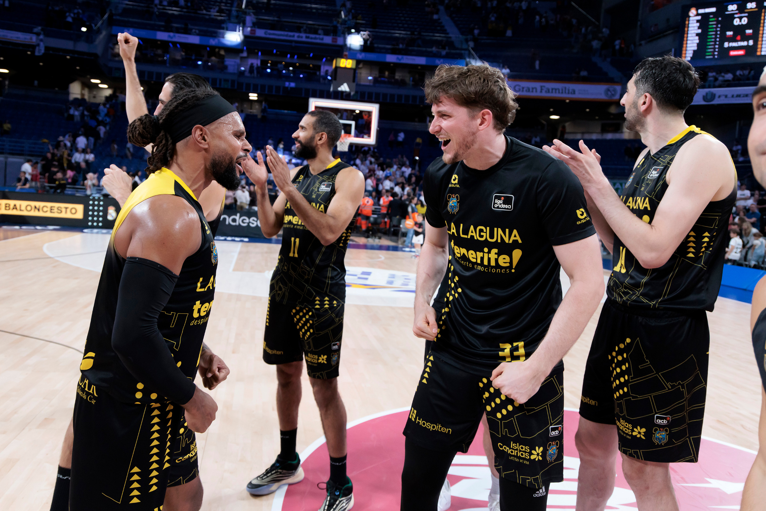 domingo, 19 abril, 2026 - 21:18¡Este equipo no tiene techo! La Laguna Tenerife sumó este domingo un triunfo de mucho prestigio en el fortín del Real Madrid (90-95), actual líder de la Liga Endesa, tras un enorme esfuerzo colectivo. El equipo aurinegro festejó una victoria en el Movistar Arena trece años después (la única vez que venció allí al conjunto blanco fue en marzo de 2013), al llevarse un partido que tuvo que ganar varias veces, pero que no se dejó arrebatar.