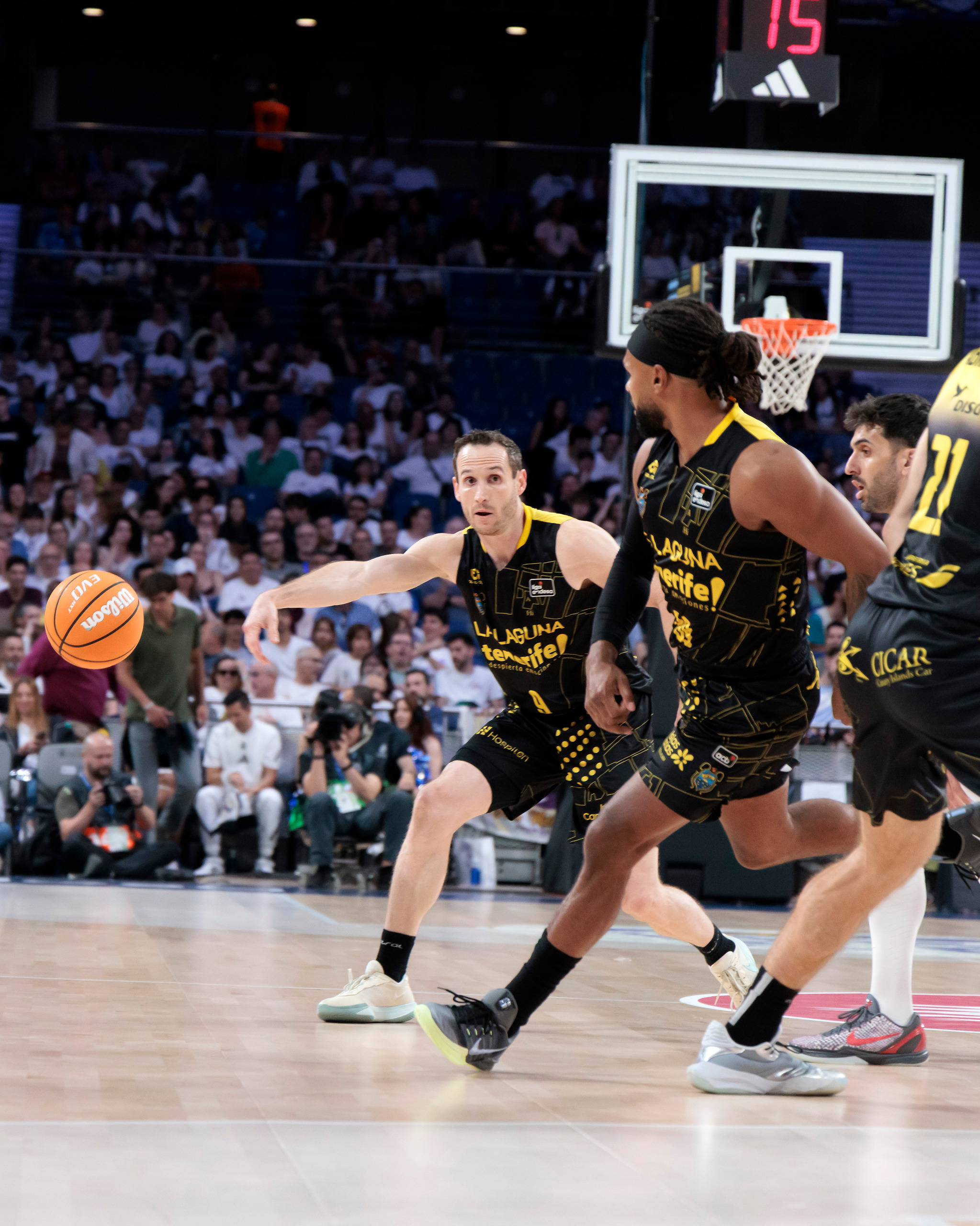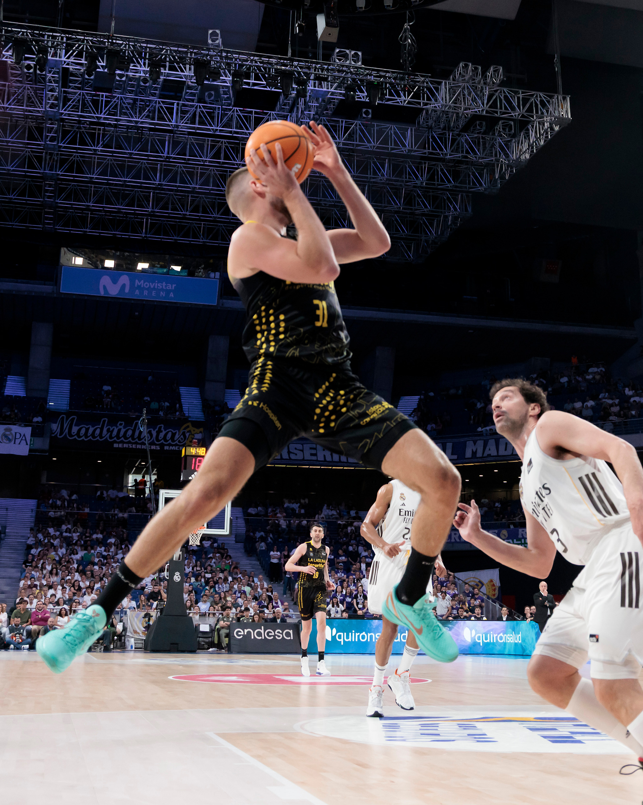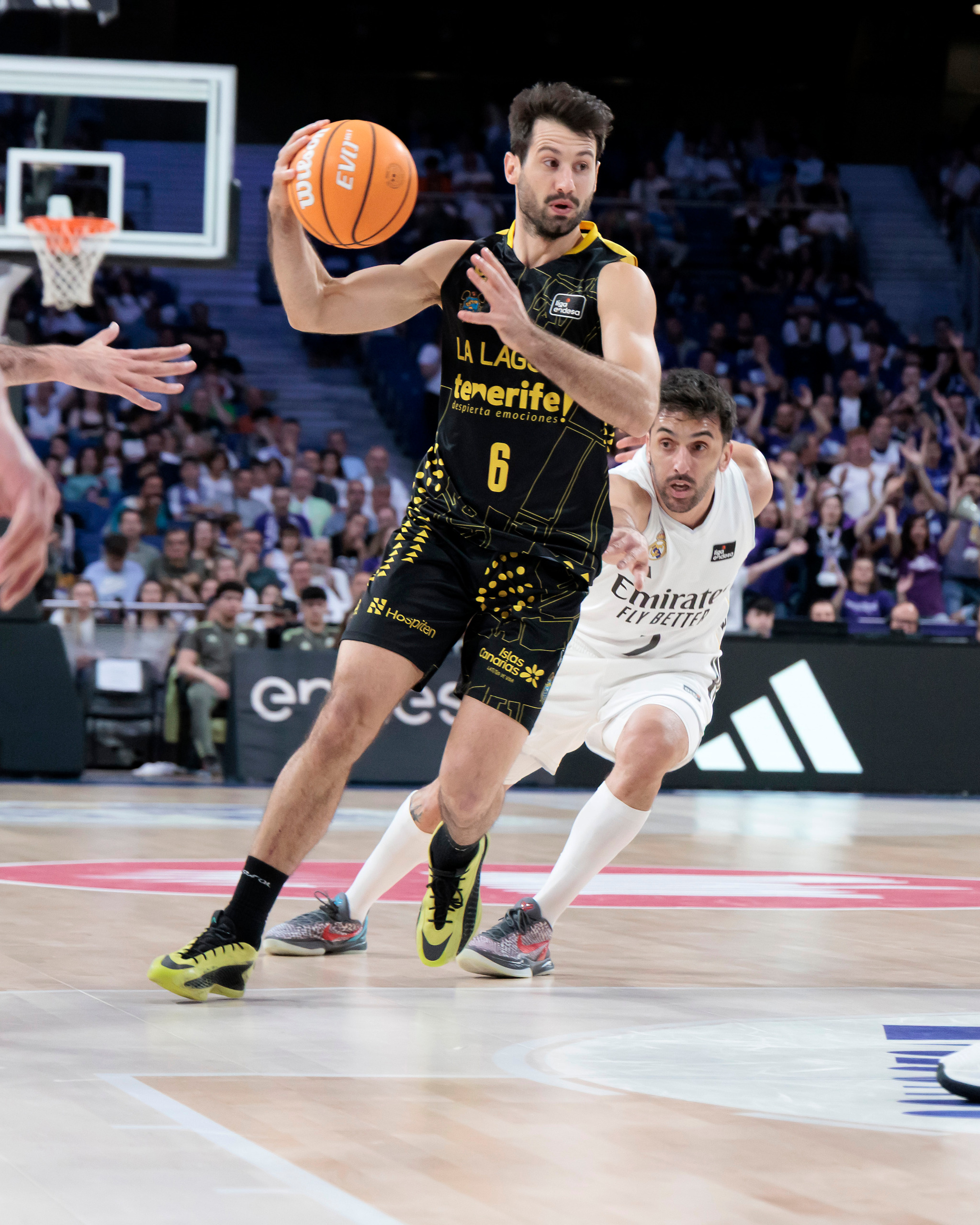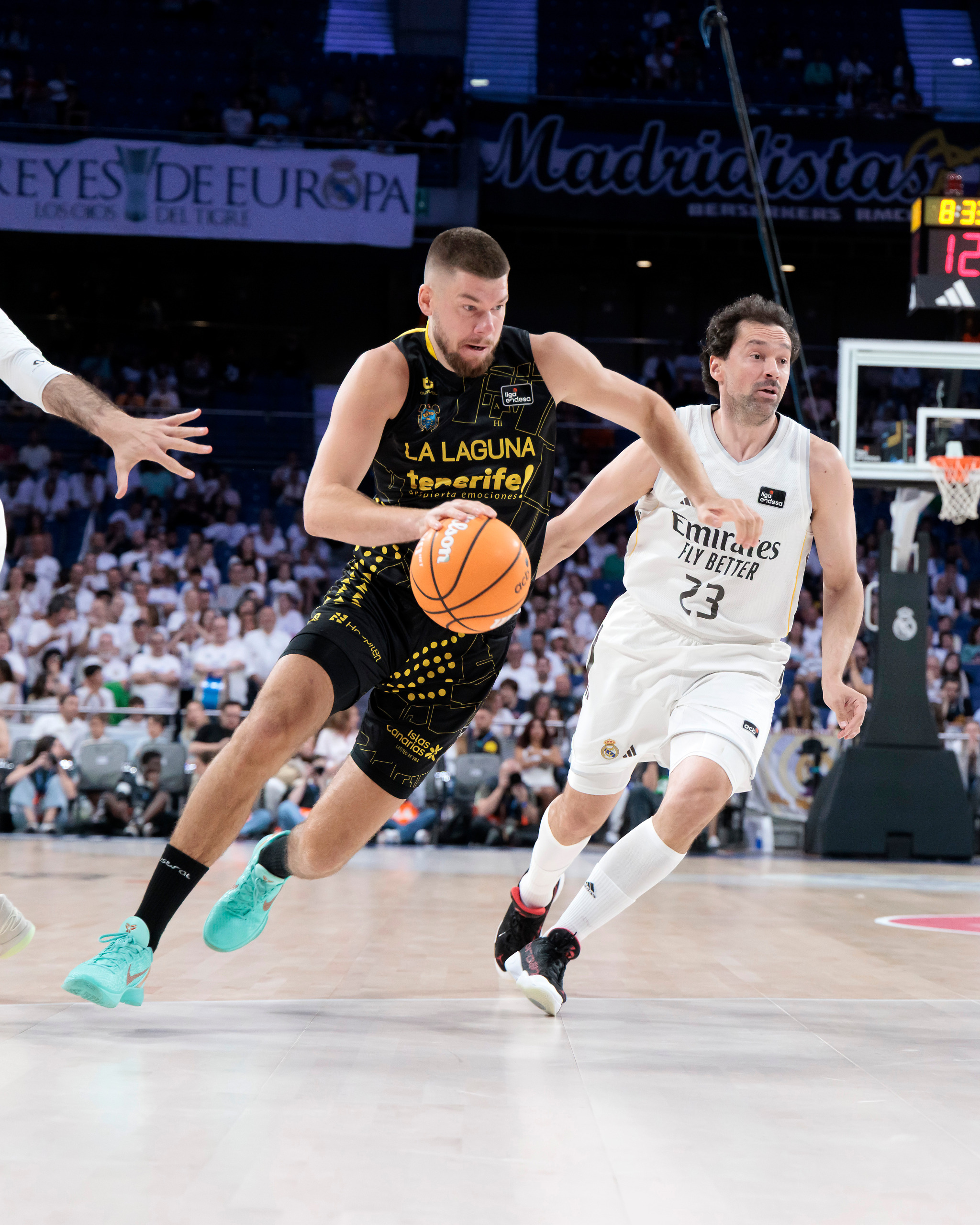 domingo, 19 abril, 2026 - 21:18¡Este equipo no tiene techo! La Laguna Tenerife sumó este domingo un triunfo de mucho prestigio en el fortín del Real Madrid (90-95), actual líder de la Liga Endesa, tras un enorme esfuerzo colectivo. El equipo aurinegro festejó una victoria en el Movistar Arena trece años después (la única vez que venció allí al conjunto blanco fue en marzo de 2013), al llevarse un partido que tuvo que ganar varias veces, pero que no se dejó arrebatar.