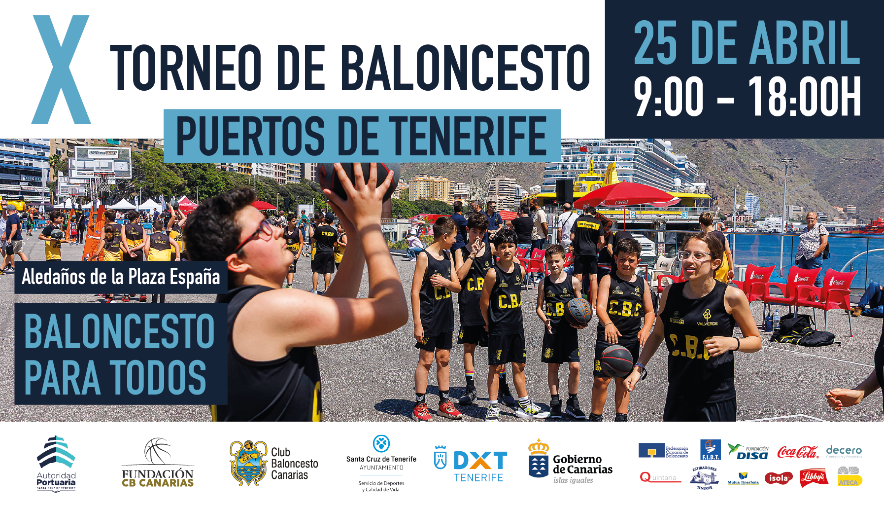 miércoles, 22 abril, 2026 - 14:59La Autoridad Portuaria de Santa Cruz de Tenerife, junto a la Fundación Club Baloncesto Canarias y con la colaboración de la concejalía de Deportes del Ayuntamiento de Santa Cruz de Tenerife y la Federación Insular de Baloncesto de Tenerife, celebrará este próximo sábado 25 de abril la décima edición del ‘Torneo de Baloncesto Puertos de Tenerife’, que tendrá lugar en los terrenos de competencia portuaria ubicados en los aledaños de la Plaza de España, de 9:00 a 16:00 horas.
