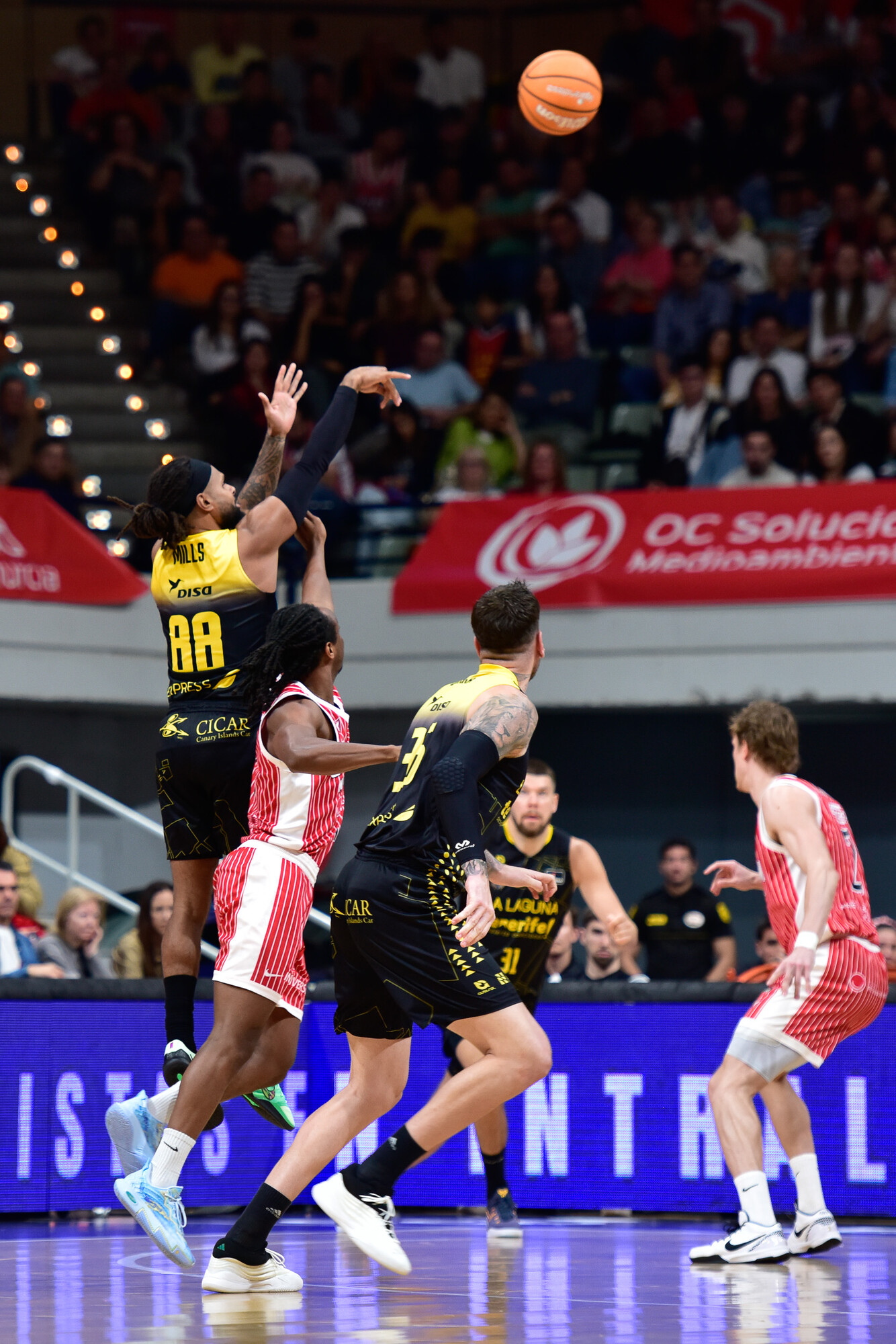 La irrupción de la segunda unidad, liderada por un Patty Mills letal (14 puntos en el primer cuarto con un 4/5 en triples), permitó a La Laguna Tenerife llevar el choque a su territorio (24-29). Reaccionaron los locales (33-33), con De Julius asumiendo galones, pero los insulares se aferraron a su plan de partido, aprovecharon la chispa de Jaime Fernández y el dominio de Gio en la zona para irse al descanso cuatro arriba (41-45).