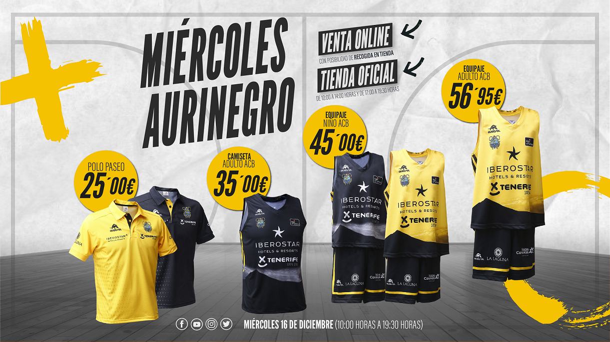 Llega un nuevo ¡Miércoles Aurinegro! La Tienda Oficial del Iberostar Tenerife lanzará este miércoles día 16 promociones con precios especiales en varias de las prendas estrella del catálogo Austral Sport 2020-21. Así podrá adquirirse la equipación oficial ACB, con la silueta del Teide y el #MardeNubes, para adultos (incluye pantalón y camiseta amarilla), a 56’95 […]