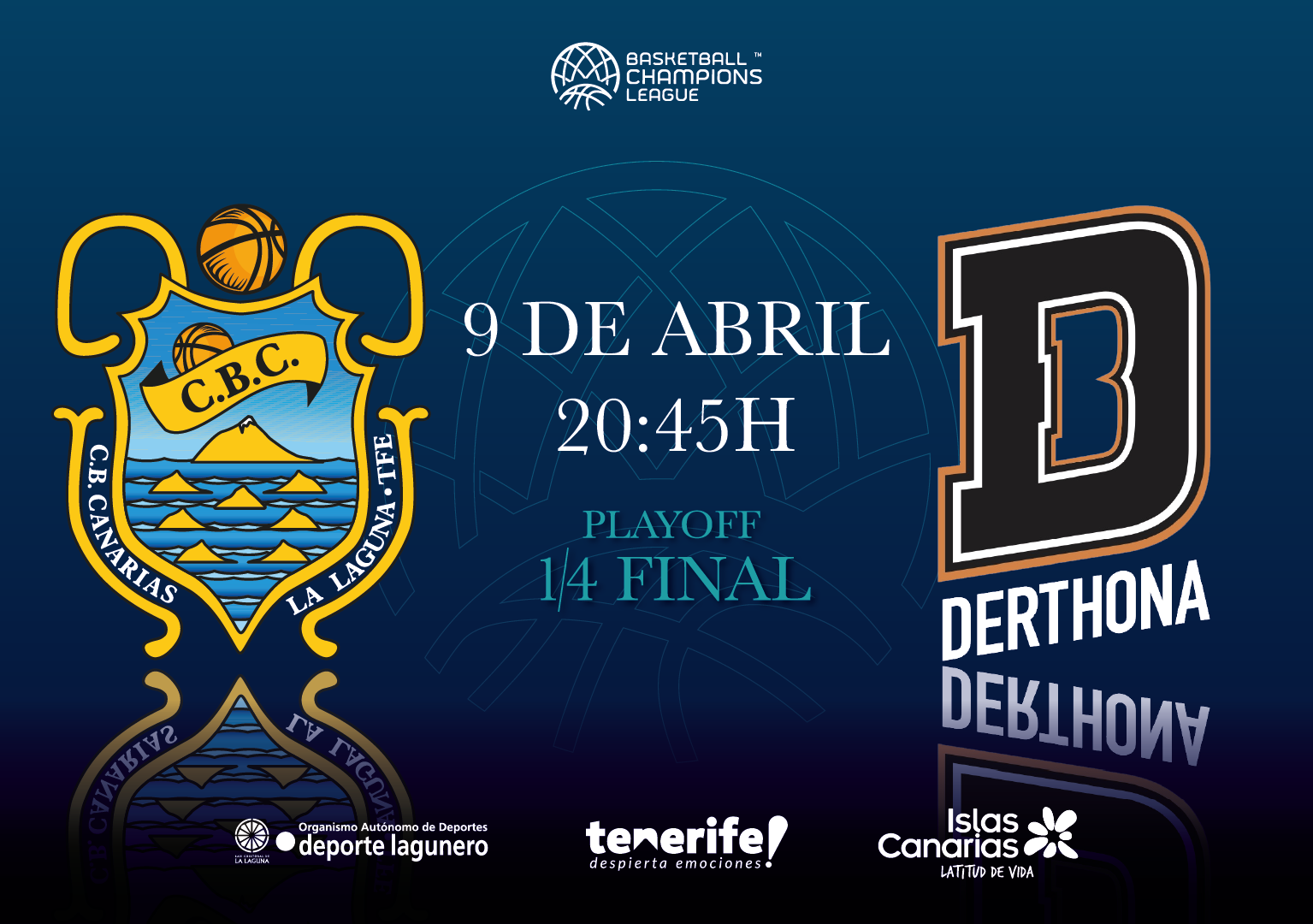 La Basketball Champions League (BCL) ha confirmado este lunes las fechas y horarios de los playoff de cuartos de final. La serie de La Laguna Tenerife ante el Derthona Basket italiano arrancará el miércoles día 9 de abril, a las 20:45 hora canaria, en el Santiago Martín. El segundo choque de la eliminatoria se celebrará […]